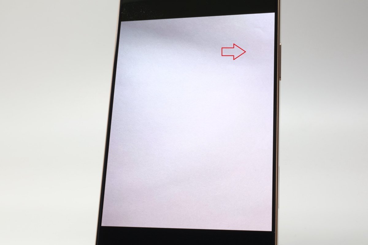 ・インカメラ撮影時、写真ともに縦(赤矢印)に光のラインが写り込みます(写真6 ※インカメラで撮影した写真を撮影してます)