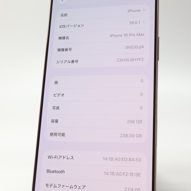 ■機種 : iPhone16 Pro Max 256GB デザートチタニウム A3295 3N530J/A