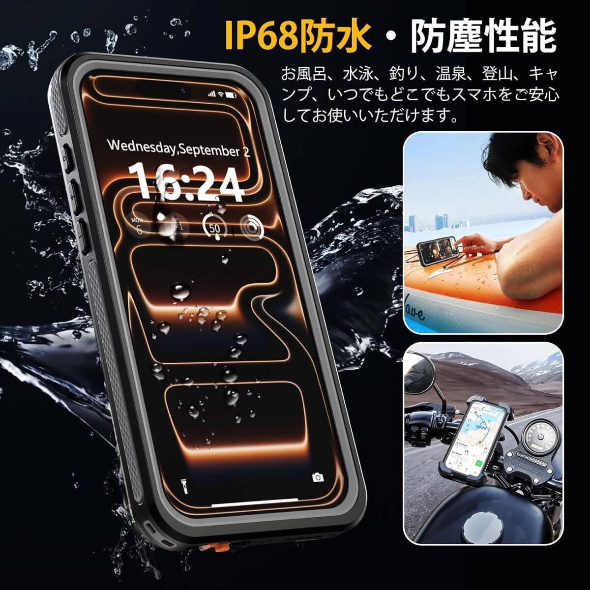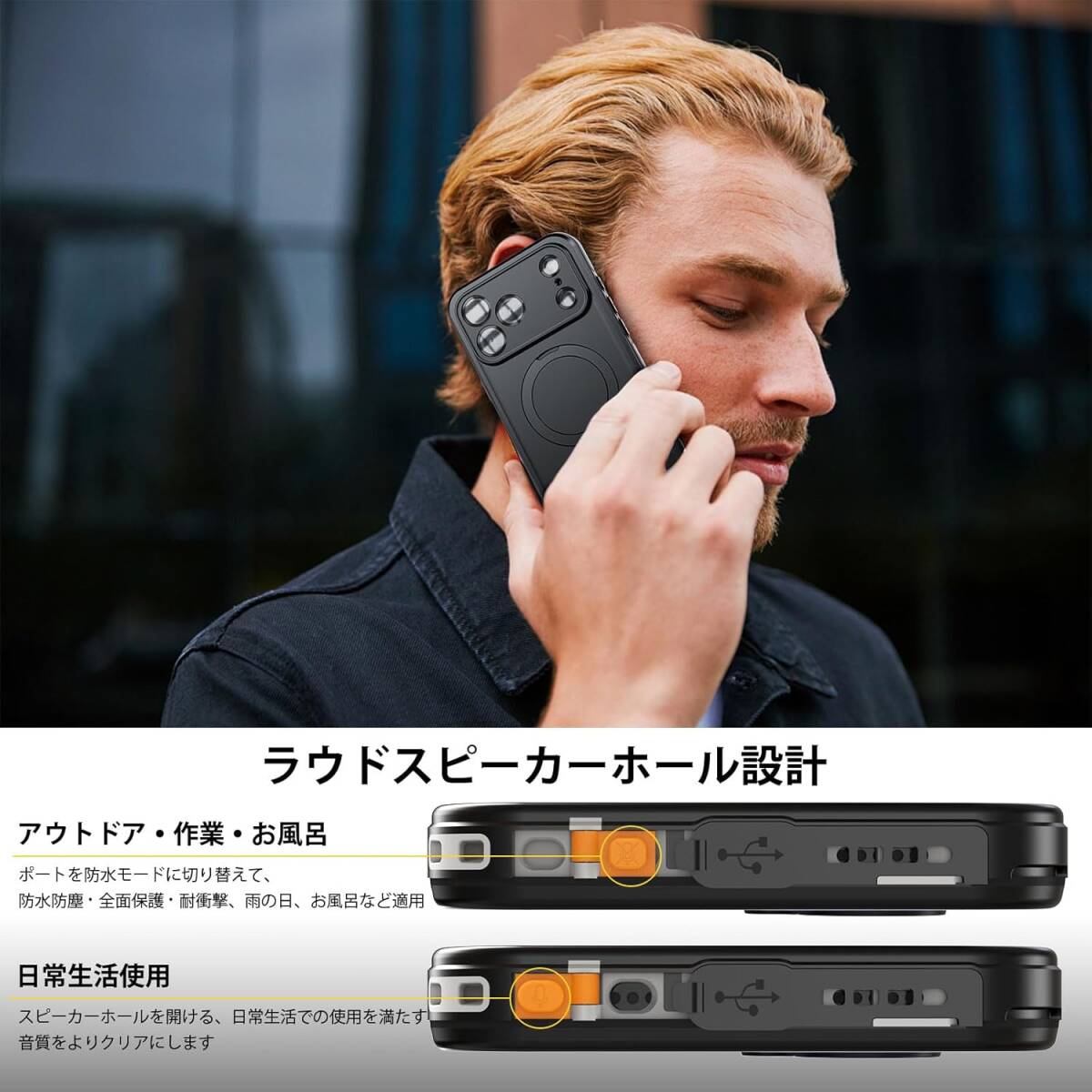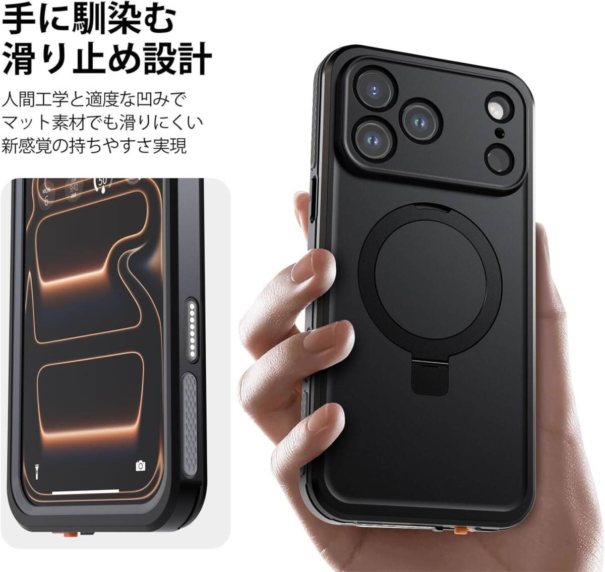 • 【IP68防水認証取得】iPhone 17 Pro 専用の完全防水防塵ケースです。最高防水レベルのIP68認証を取得し、水深さ2Mの水中に1時間まで水没でき、さらに水中撮影でも対応出来ます。防水機能だけでなく、砂・ホコリ・ゴミなどの侵入も防ぎますので、お風呂、水泳、釣り、温泉、登山、キャンプ、いつでもどこでもスマホをご安心してお使いいただけます。