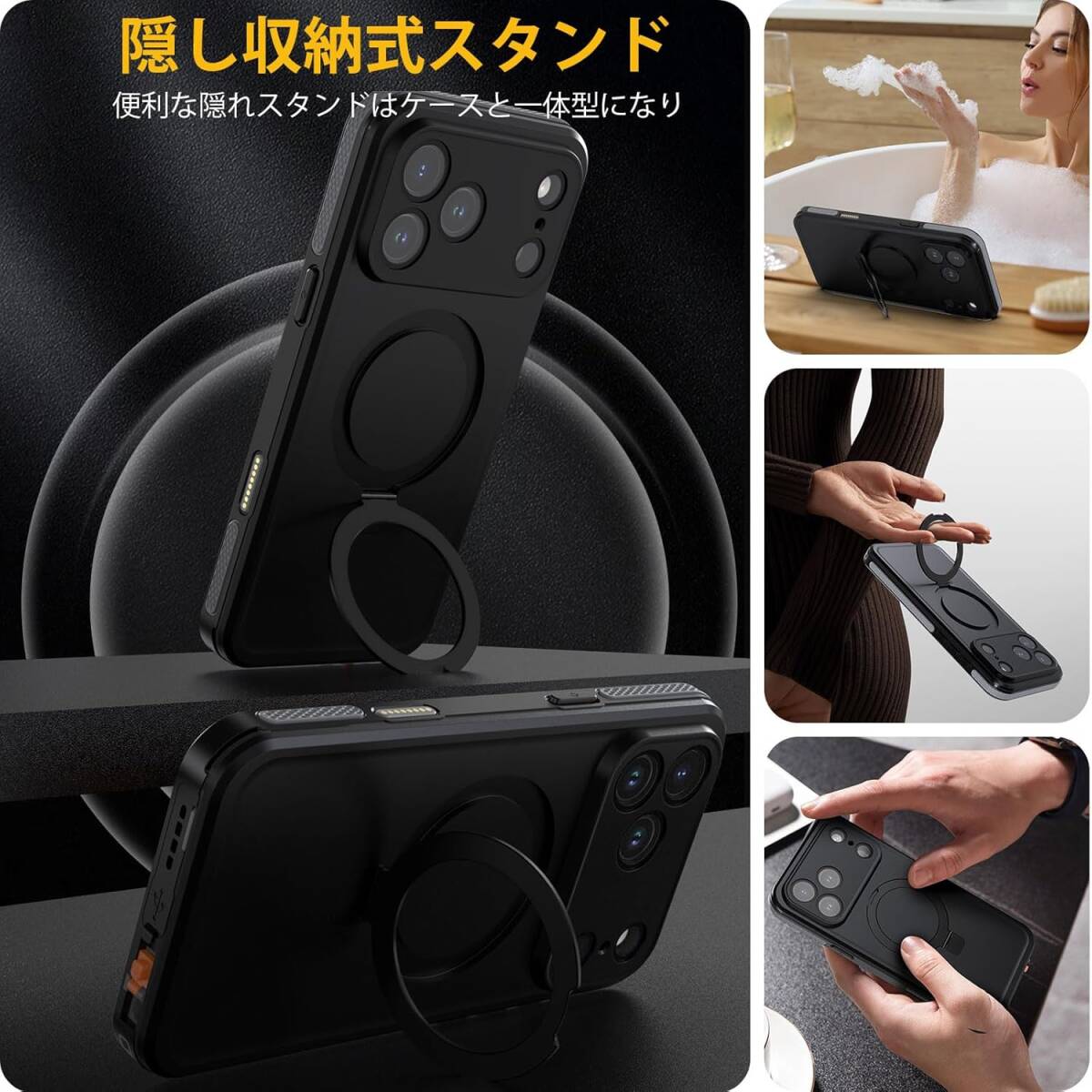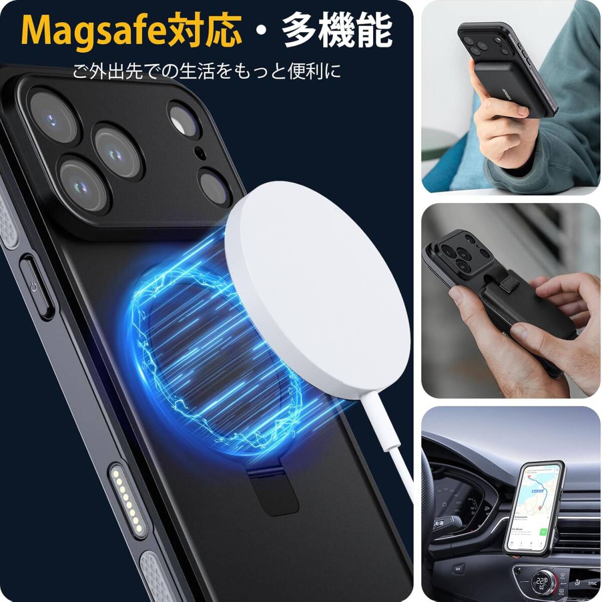 • 【スタンド機能・MagSafe対応】便利な隠れスタンドはケースと一体型になり、絶妙なデザインで携帯を自由に多角度を調節でき、力よくスマホを支えて、映像や読書などに楽しめることができます。強力なN52マグネットを搭載しており、マグセーフ充電器やその他様々なマグセーフマグネットアクセサリーをしっかりと保持します。また、急速充電可能です、マグセーフアクセサリーとの完全な互換性があり、安心してお使いいただけます。