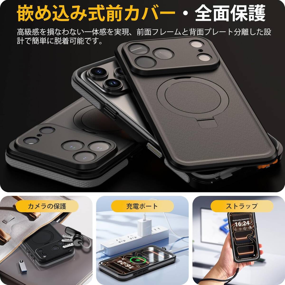 【防水・スタンド機能・MagSafe対応】UMITTOS iPhone 17 Pro 用 ケース 衝撃吸収 全面保護 防雪 防塵 滑り止め 耐衝撃 ストラップ付