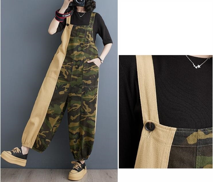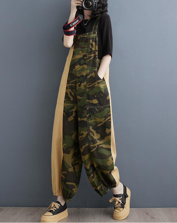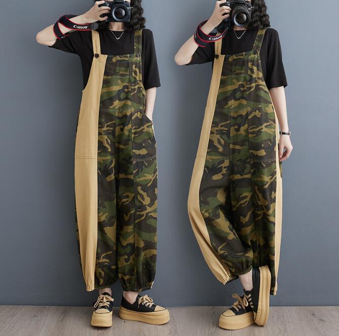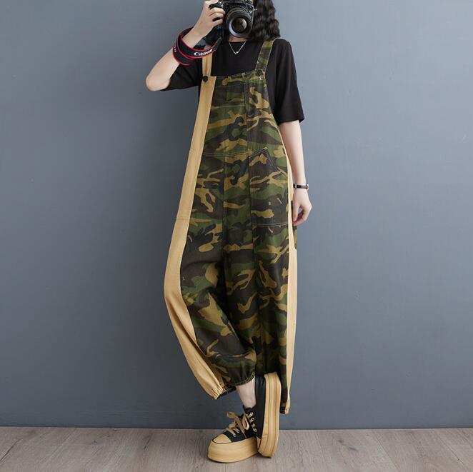 人気品アンティーク風 デニム ジーンズ 迷彩柄 オールインワン つなぎ サロペット レディース サロペットパンツ オーバーオール
