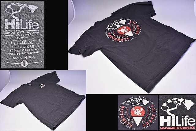 HiLife ★ MATSUMOTO SHAVE ICE ★ コラボ Tシャツ ★ ハイライフ ★ マツモトシェーブアイス ★ 黒 ★ L ★ 綿100% ★ 中古品 ★