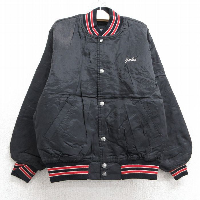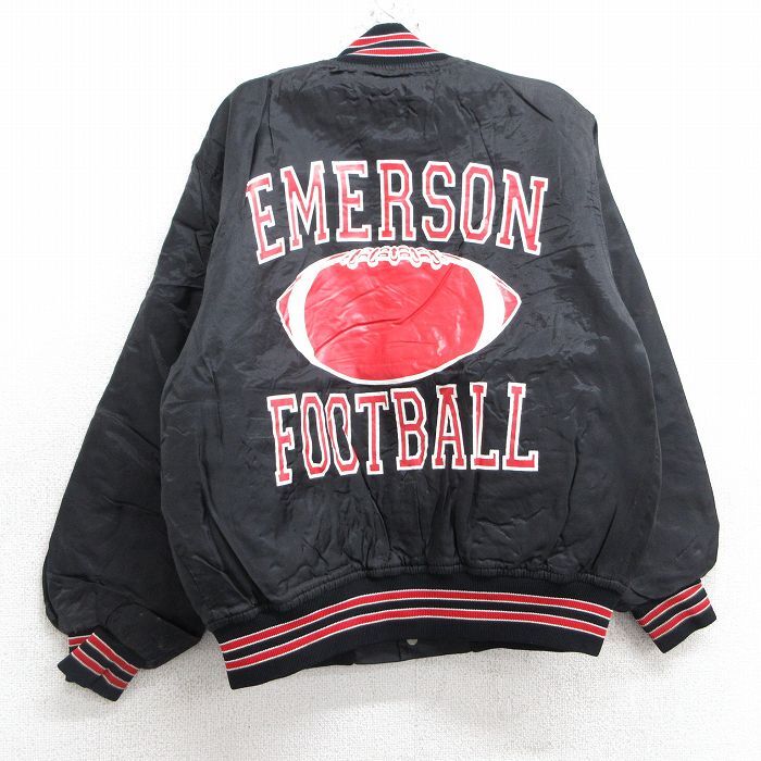 【商品名】 古着 長袖 ナイロン ジャケット キッズ ボーイズ 子供服 90年代 90s エマソン フットボール USA製 黒 内側キルティング