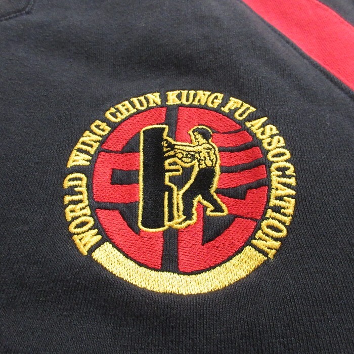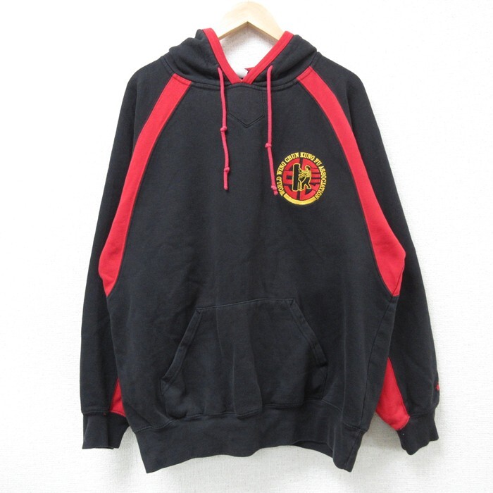 【商品名】 L★古着 長袖 スウェット パーカー メンズ Wing Chun Kung Fu ツートンカラー ラグラン 黒他