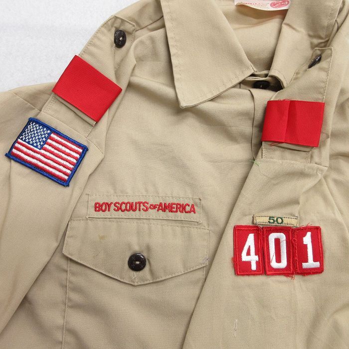 【商品名】 XL★古着 半袖 ボーイスカウト シャツ メンズ 90年代 90s ワッペン USA製 ベージュ【spe】