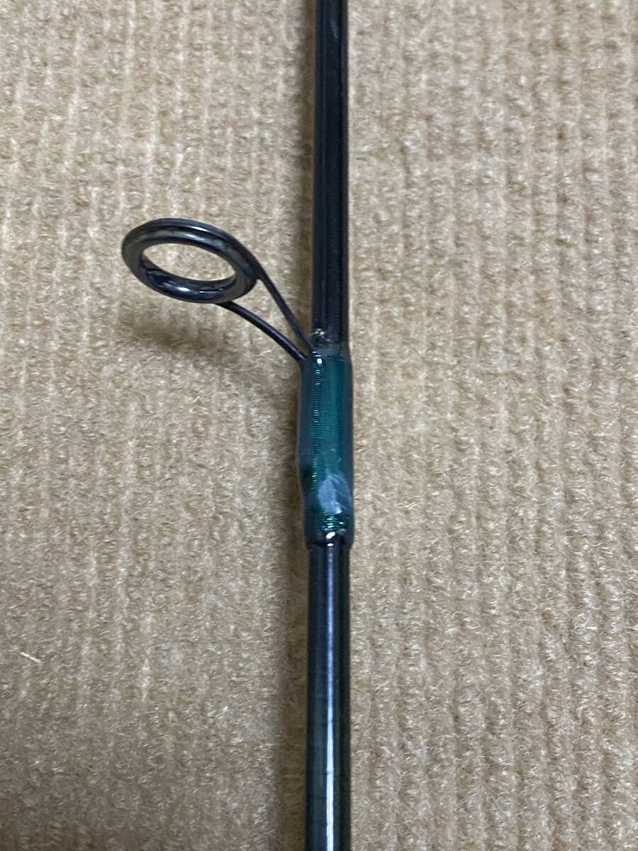 ダイワの古いバススピニングロッドです。アモルファスウィスカーを採用した人気があったモデルです。年代相当の劣化でこの時代のダイワのガイドスレッドコーティングはパリパリになっていたのでスレッドとコーティングをやり直しました。素人作業なのできれいではないです。写真で確認ください。往年の名ロッドをガンガン使いたいって人向けです。