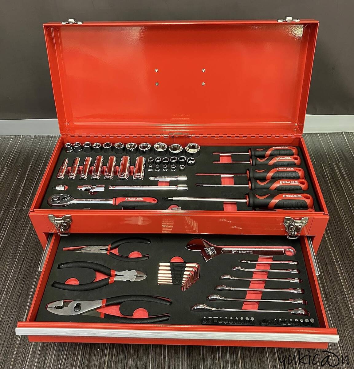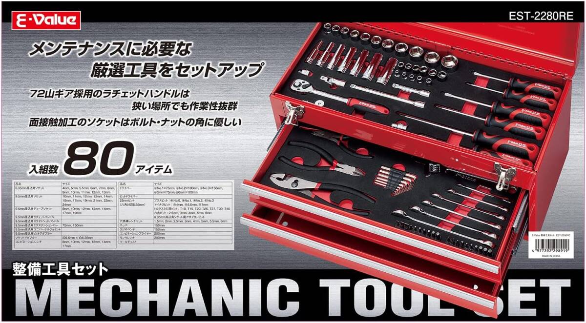 整備工具セット ツール80点 ツールチェスト レッド EVAマットトレー仕様 各種メンテナンス作業対応 バイク 自動車 メンテナンス工具 整備