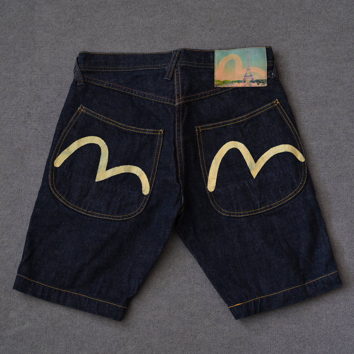 【エヴィス ハーフ ショート パンツ ホワイトかもめ EVISU デニム】