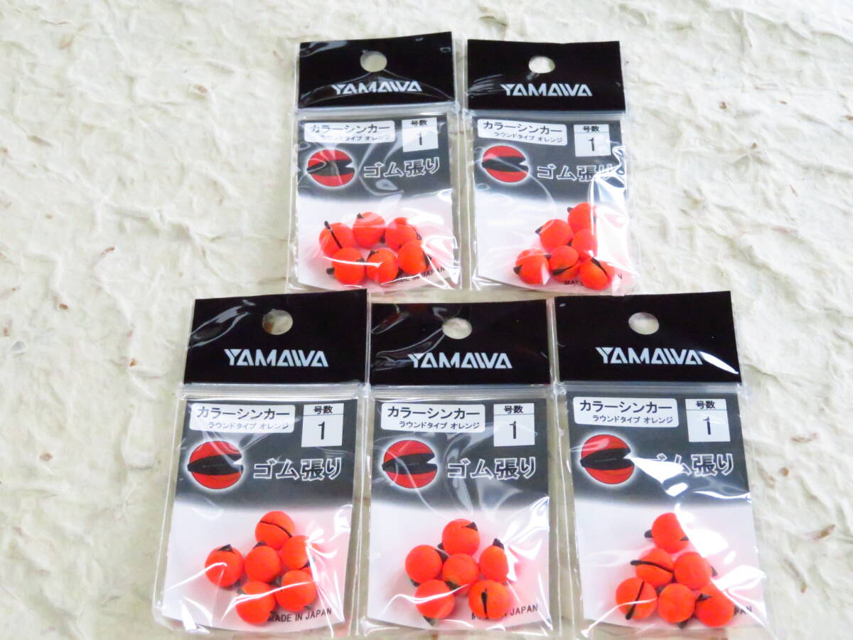 ヤマワ カラーシンカー 1号 5個セット ラウンドタイプ オレンジ ゴム張り