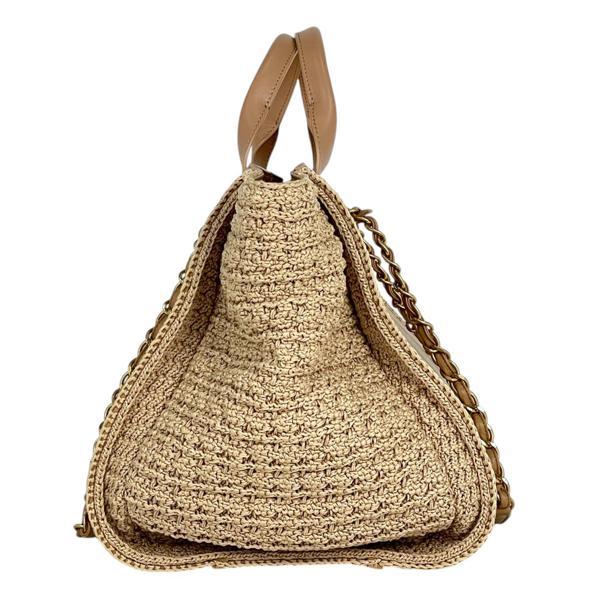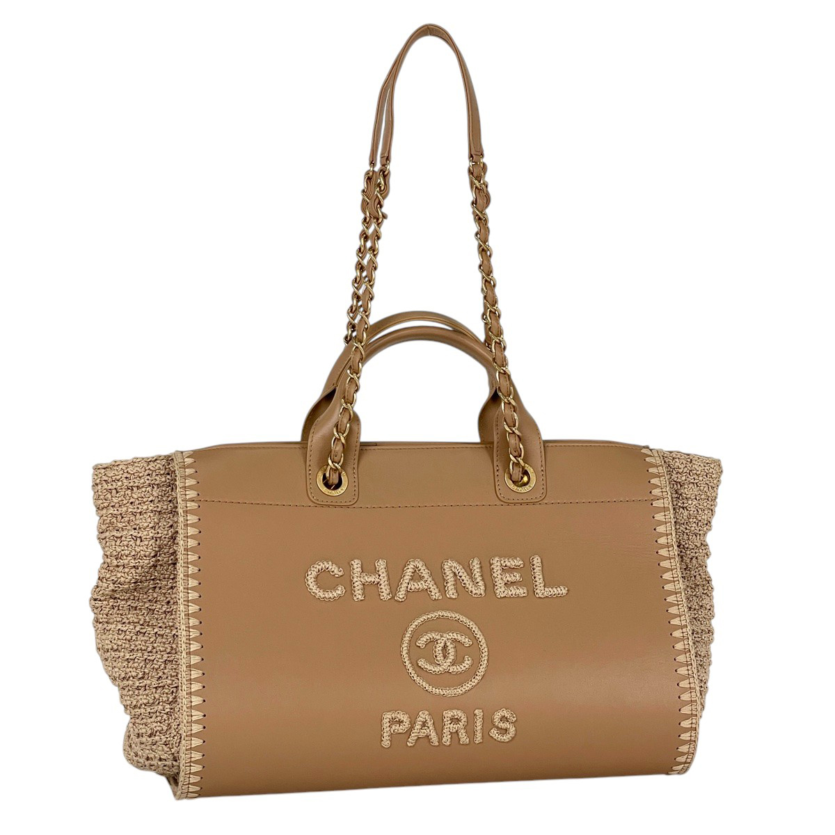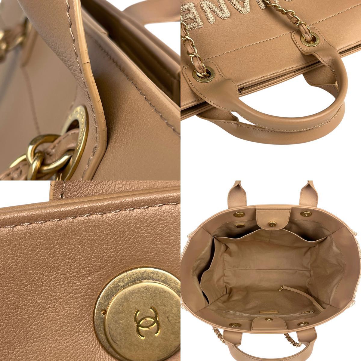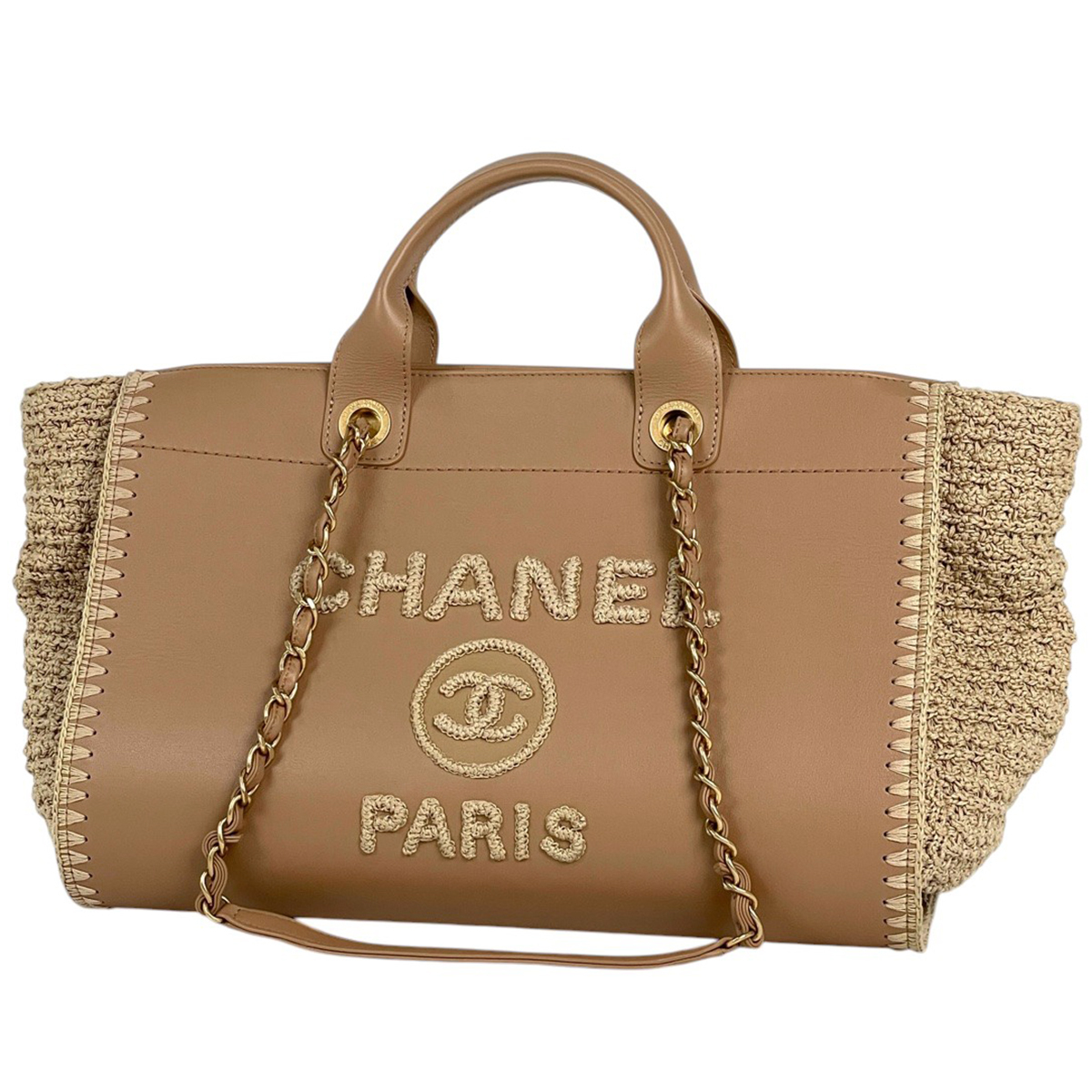 | シャネル CHANEL ドーヴィル GM チェーン ココマーク ニット トートバッグ レザー ベージュ レディース 【中古】 |