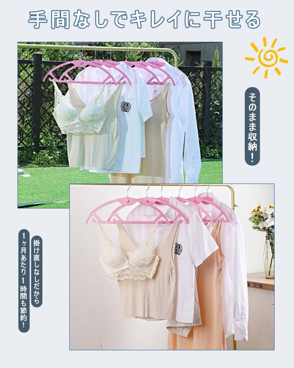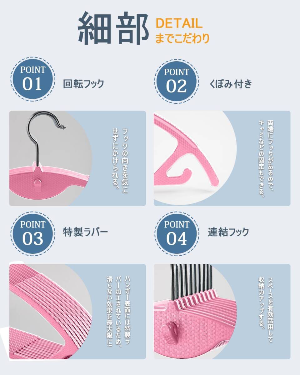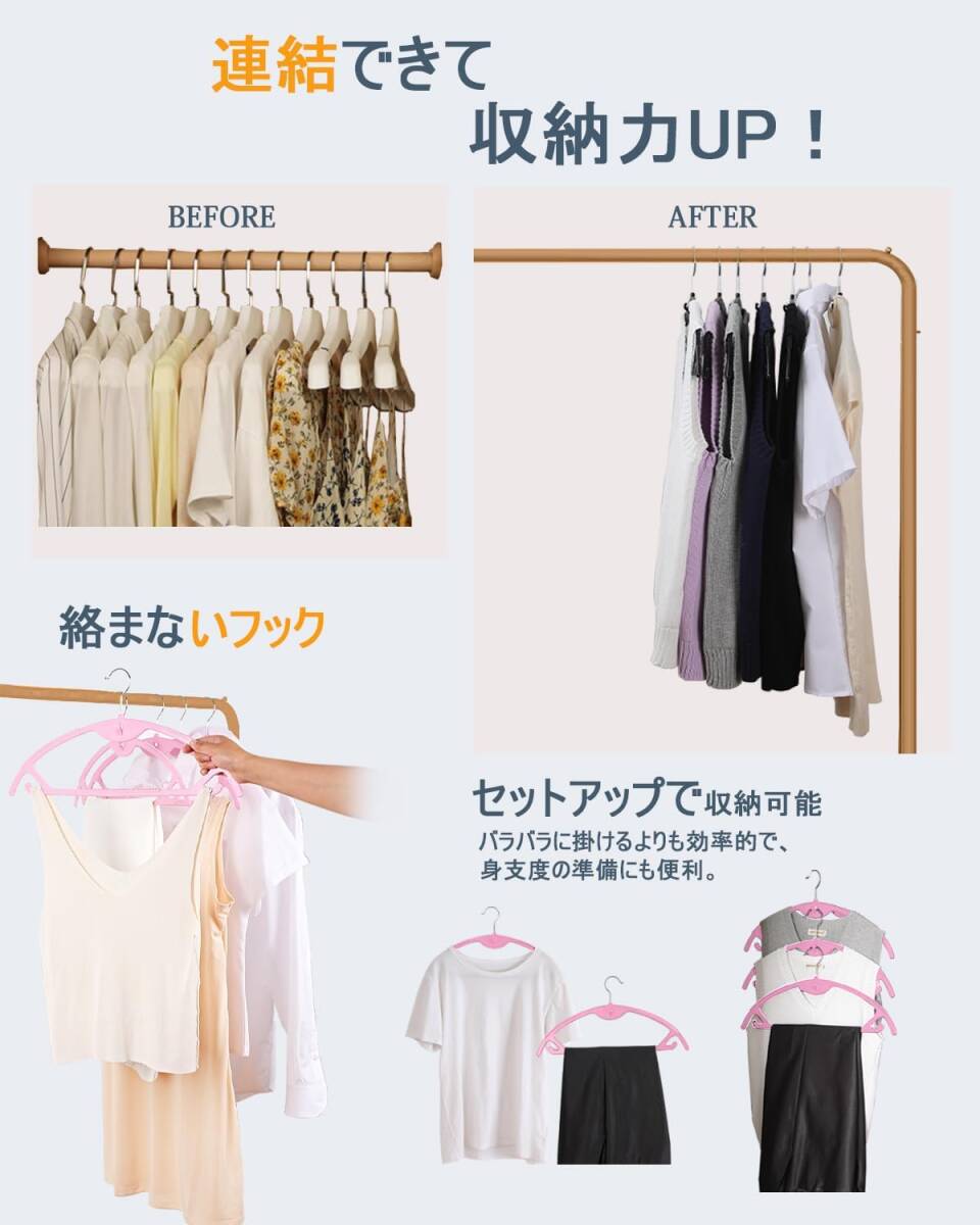 【20本組】ハンガー かたくずれ防止 跡がつかない 連結フック付き スーツハンガー 洗濯物干し 360度回転 多機能 (ピンク)