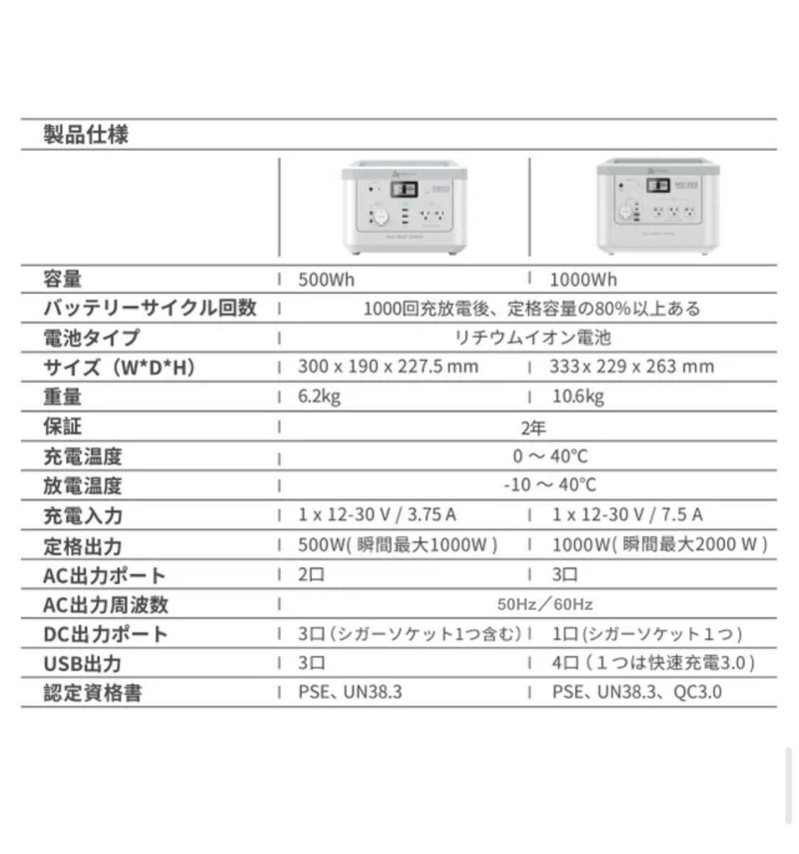 【大容量500Wh・純正弦波】
