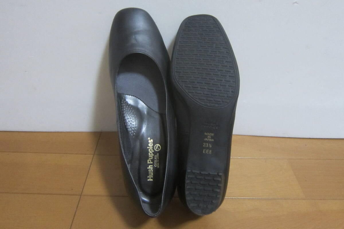 ★ ★着用極少 Hush Puppies ハッシュパピー 本革 シューズ パンプス 通勤 リクルート 黒 23.5㎝EEE 日本製★ ★