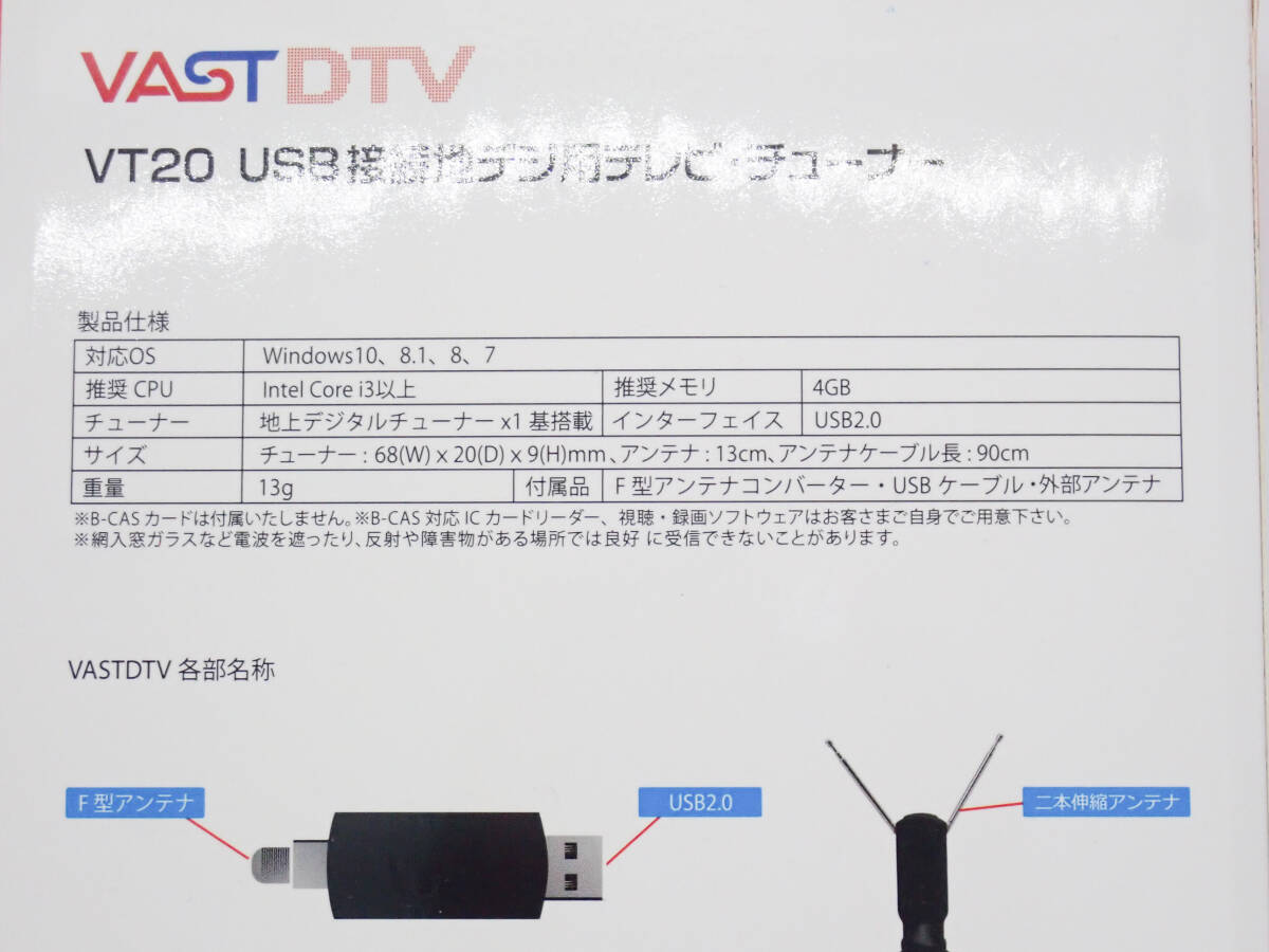 VASTDTV VT20 USB 地上デジタル TV チューナー x2個セット