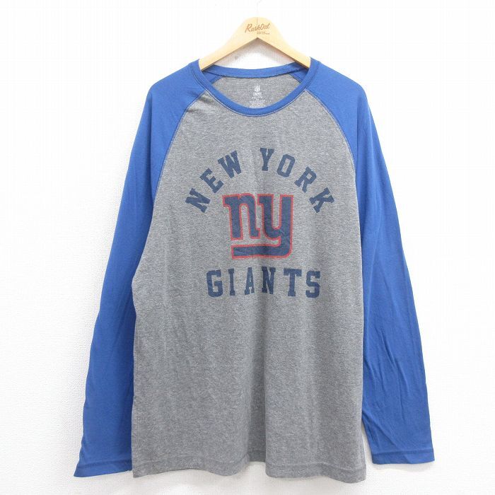 【商品名】 XL★古着 長袖 Tシャツ メンズ NFL ニューヨークジャイアンツ 大きいサイズ ツートンカラー ラグラン クルーネック グレー 霜降り アメフト スーパーボウル