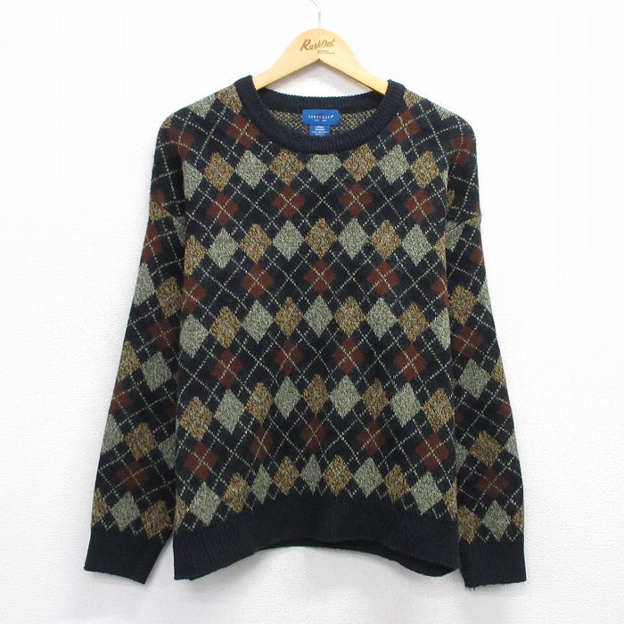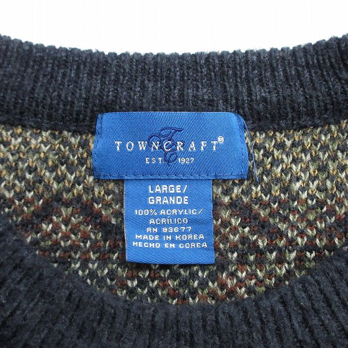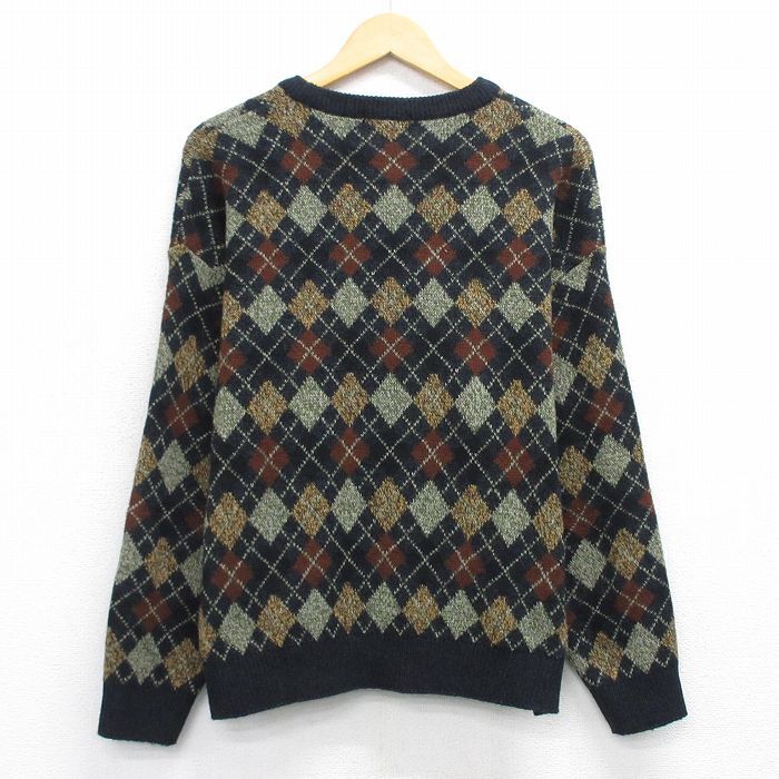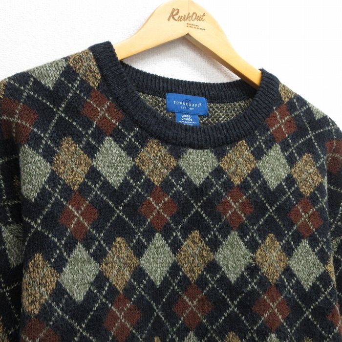 【商品名】 L★古着 タウンクラフト 長袖 セーター メンズ アーガイル アクリル クルーネック 黒他