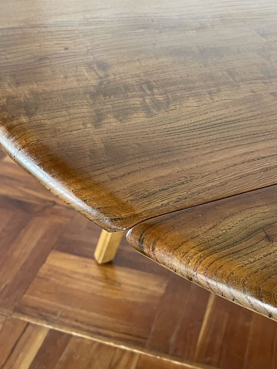 古いテーブルなので脚部にアタリキズなどのはありますが、天板の状態は良好でガタつき、グラつき、反りなど使用に当たる問題はなく、ヴィンテージの良い雰囲気のあるテーブルです。