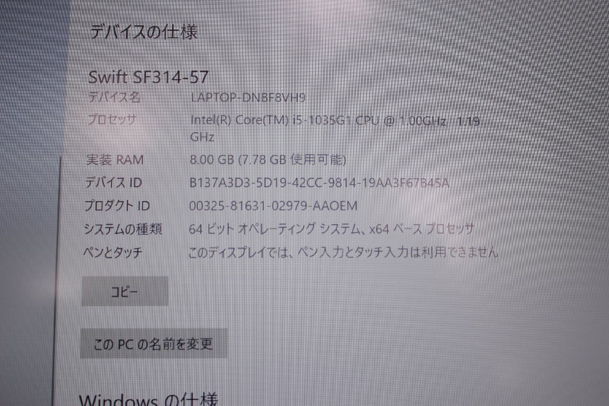 | ☆【2R1001-9】 acer ノートパソコン SWIFT N19H4 Corei5-1035G1 ジャンク