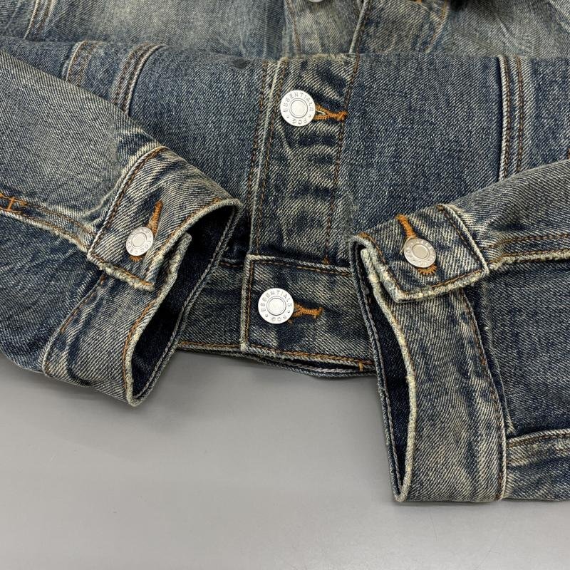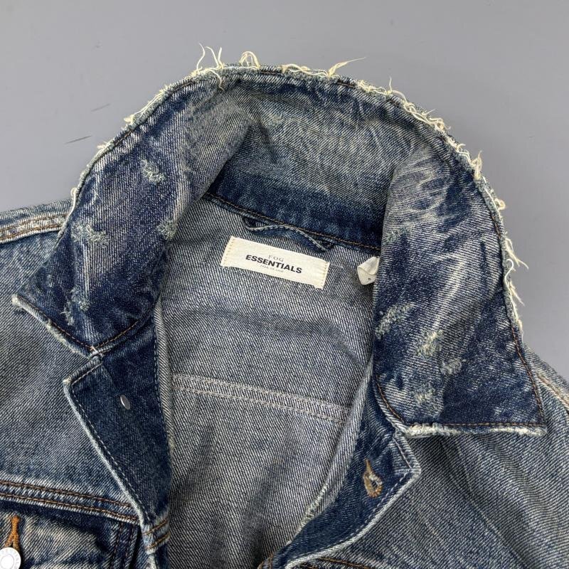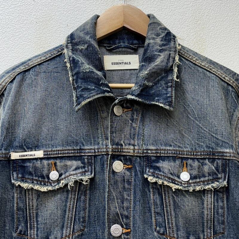 エフオージーエッセンシャルズ Denim Trucker Jacket ユーズドダメージ加工 デニム トラッカー ジャケット S