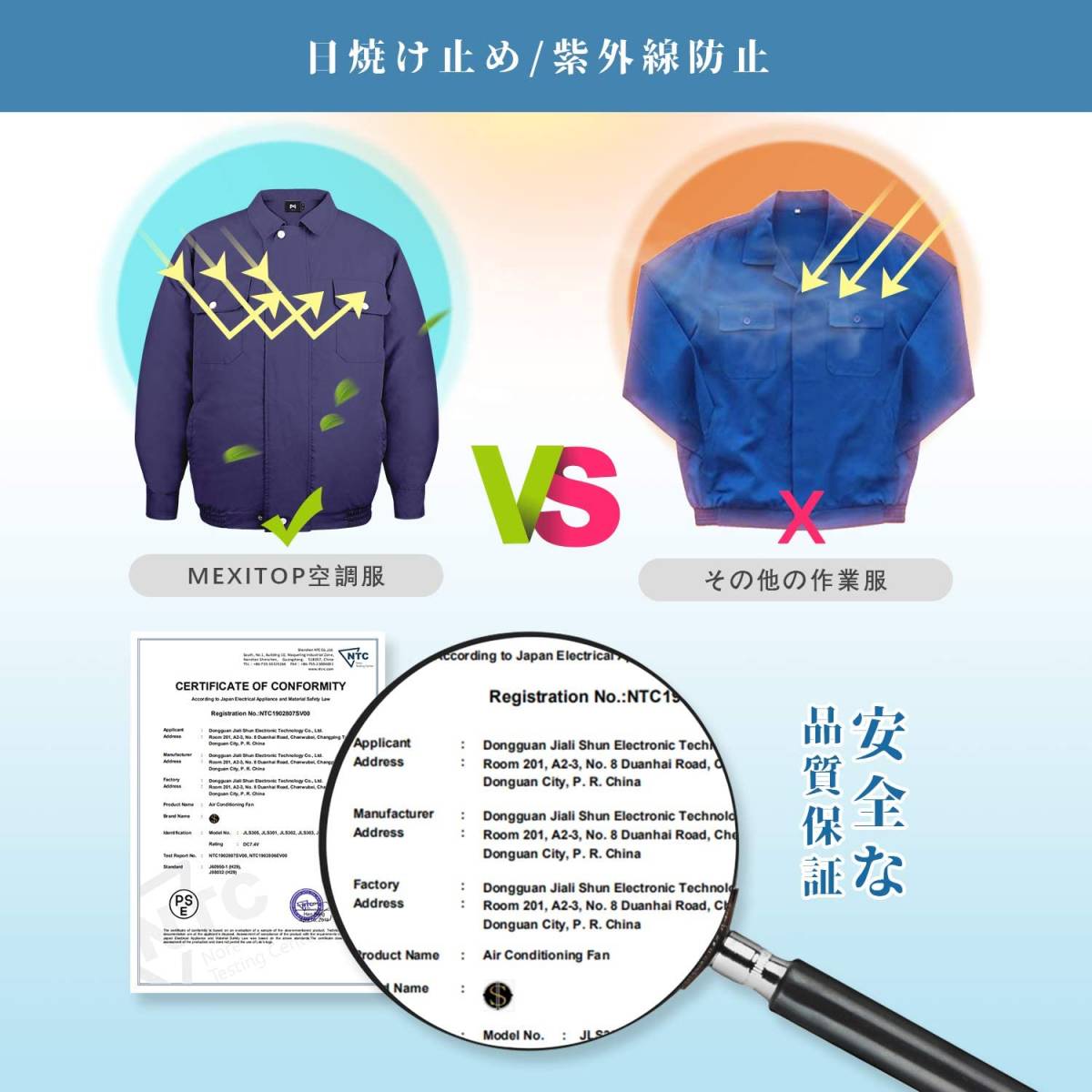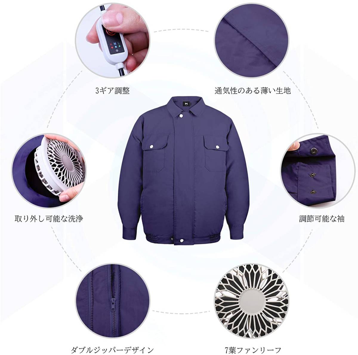 • 【強力なファン&調整可能な風速】空調服は強力なファンが装備されており、外気を取り入れ、体の表面に大量の風を流すことにより、汗を蒸発させて気化熱で体を冷やし、涼しく快適に過ごさせるための商品です。そして使用季節に応じて、調整可能な3段階の風速がありますので、春と夏に適しています。空調風神服はモバイルバッテリーで動くため、外出中でも電源の問題を心配する必要がありません。(本製品にバッテリーは付属していません)