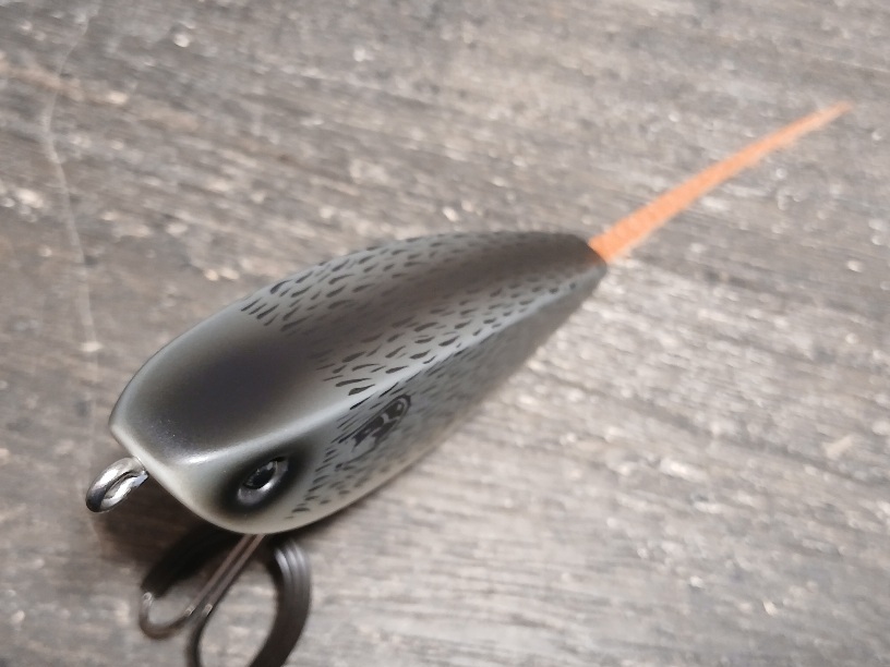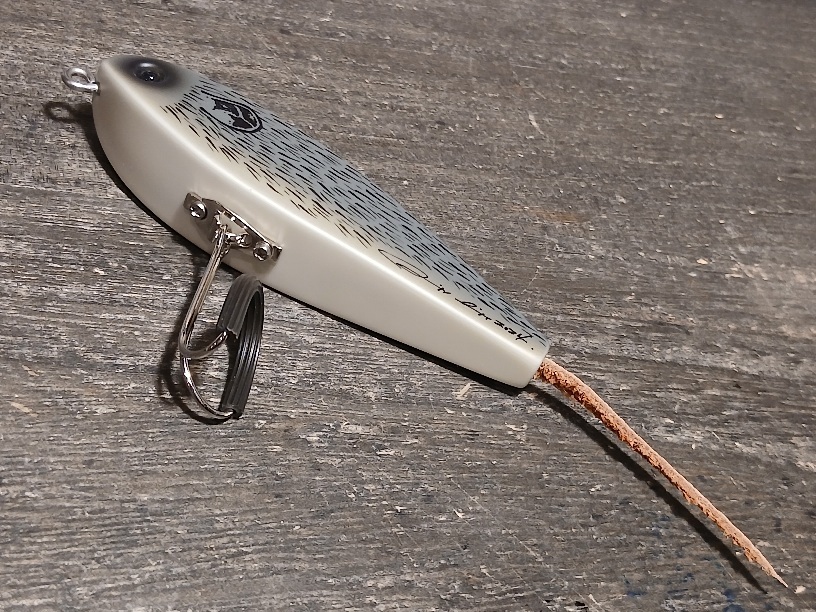 ■95mm ■約20g ■ウッド製 ■made in Japan ■イレギュラー製作の手描きネズミカラー。テールフックの代わりにレザーのしっぽがついています。 【 メーカーコメント:2021年製作のリーフクリッカーの兄弟分。ワンノッカー内蔵のペンシルベイトです。平面ボディでありながら変化球になりづらいキャスタビリティの良さや、ボディが水を叩く音とワンノッカークリック音が織りなす釣り人心をくすぐるハーモニーは受け継ぎつつ、リーフクリッカーよりもアクションのスピード域が広がったことにより、ゆったりと気持ちいいスライドから、咄嗟のボイル撃ちパニックアクションまで対応できるアクションの幅が生まれました。ペンシルベイトを苦手とする方は使いやすいと感じ、ペンシル使いの猛者は芸達者と感じることでしょう。老若男女楽しんでもらえるペンシルに仕上げました。 ※アクションの為やや左右非対称に作っております 】 ※こちらの商品は実店舗、GIZMOヤフー店、ヤフオク店併売となります。時間差で売り切れの際はご容赦ください