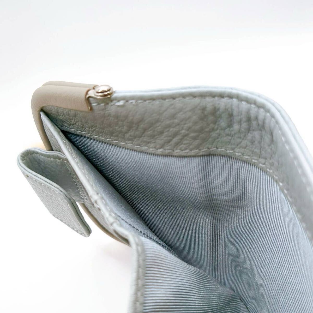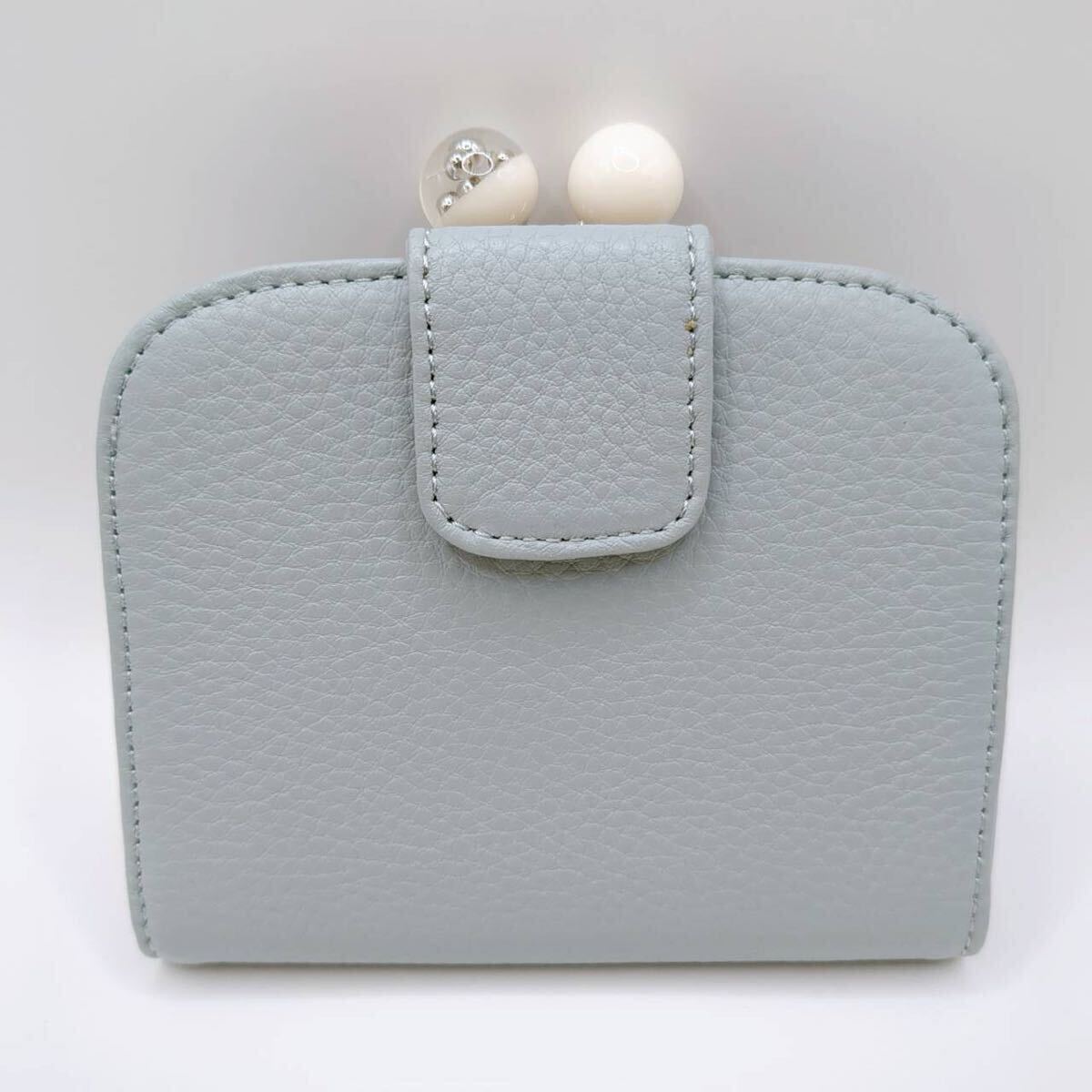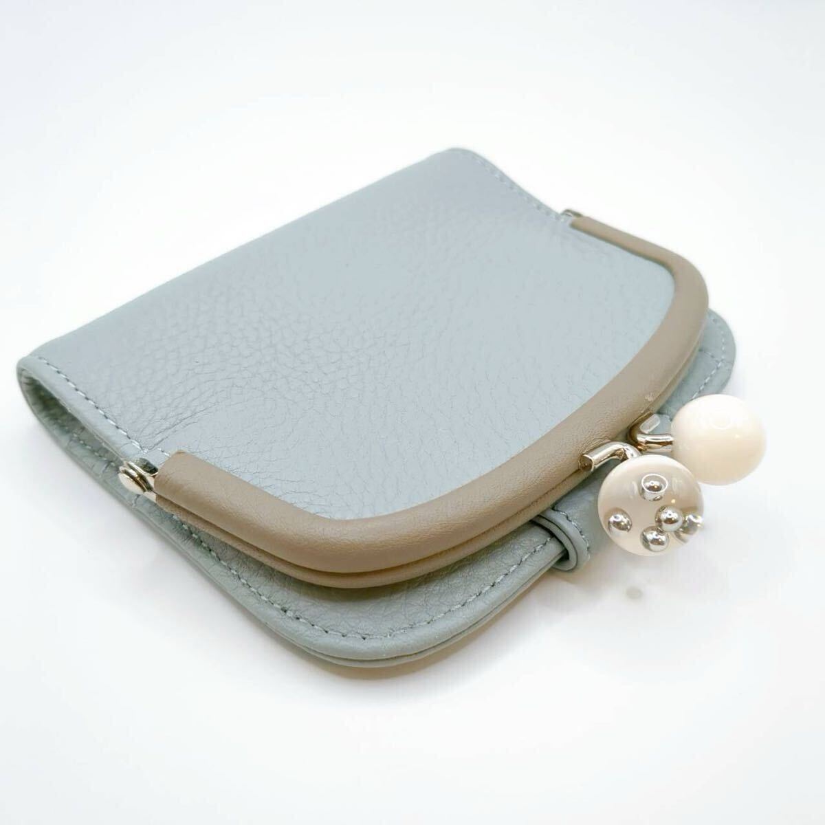 上品で落ち着いたカラーが魅力の、イアパピヨネのがま口二つ折り財布です。