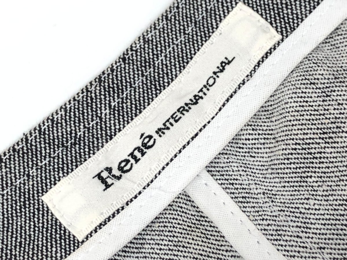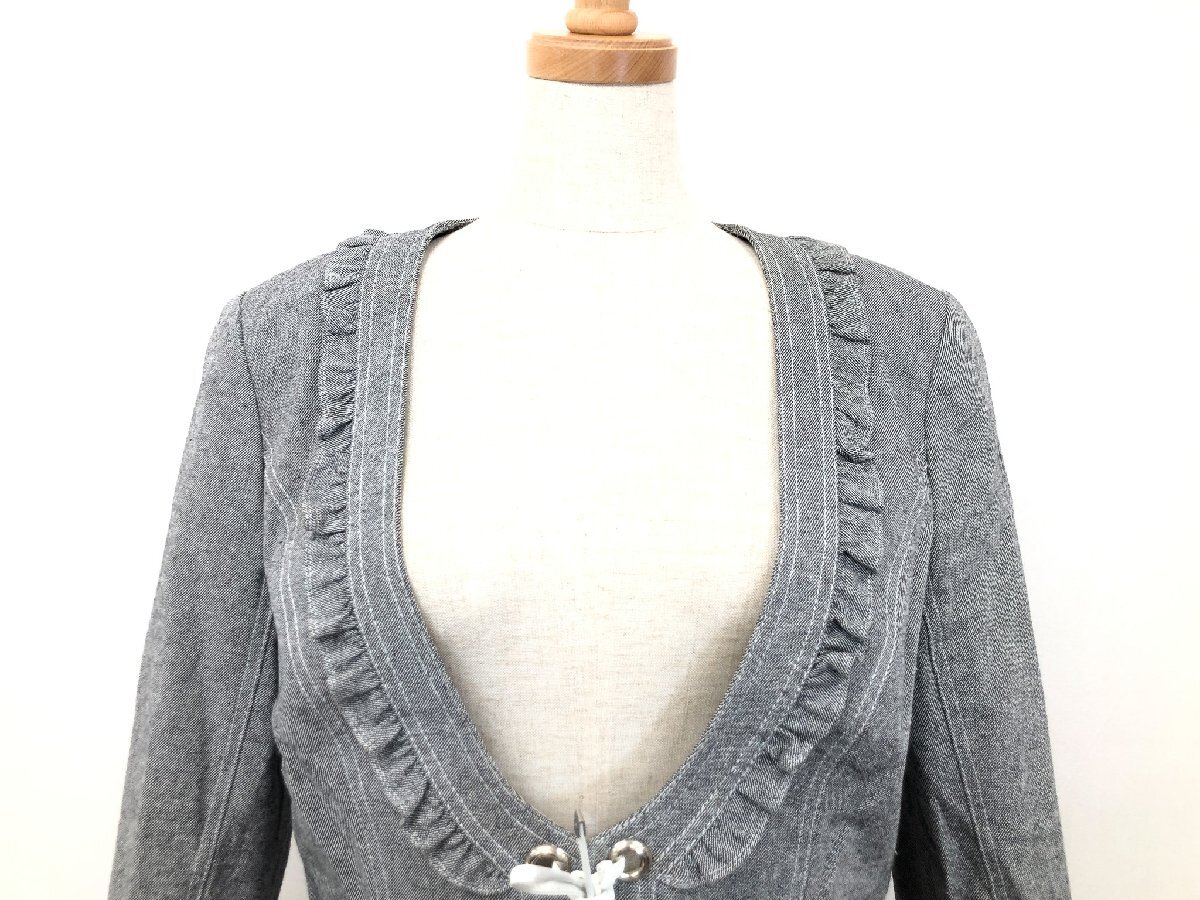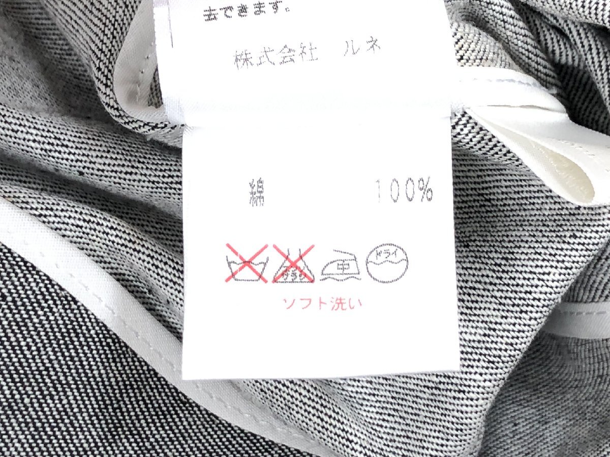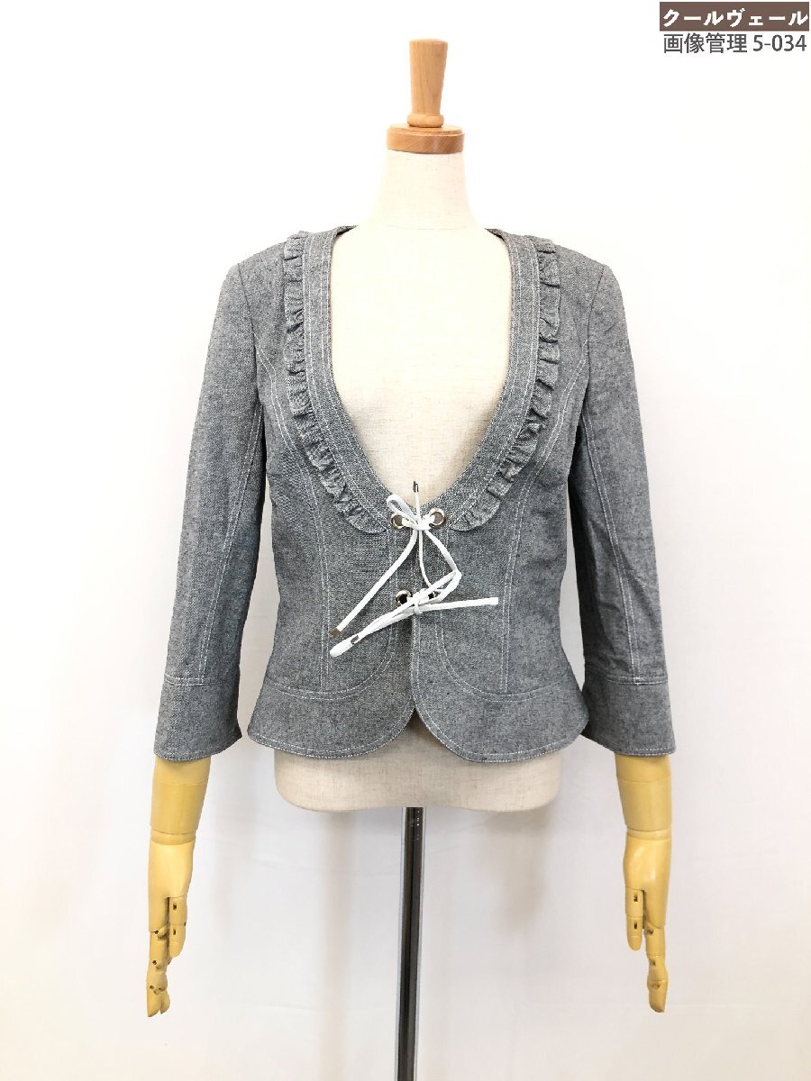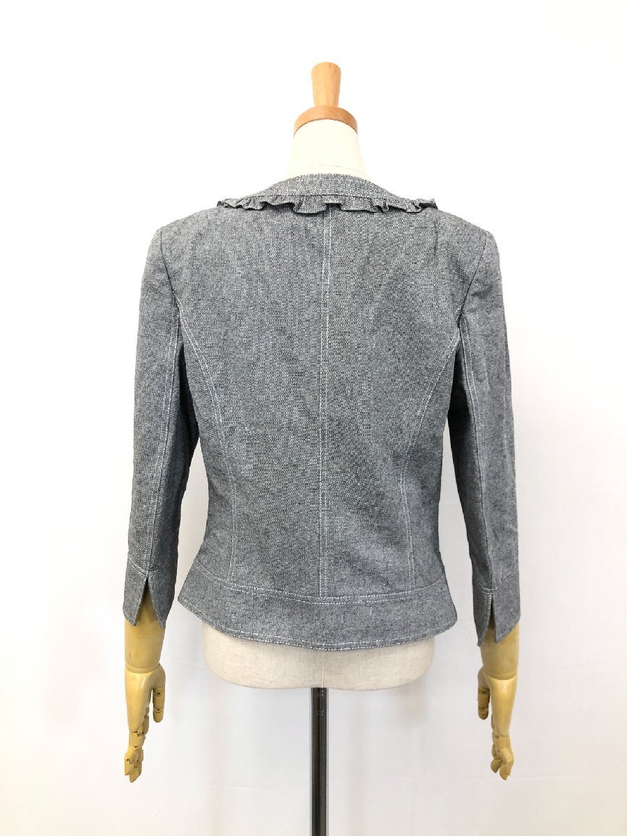 美品【ルネ Rene】 コットン100% リボン付き フリル 織柄七分袖ジャケット (レディース) size38 黒×白 ◇33LK2533◇
