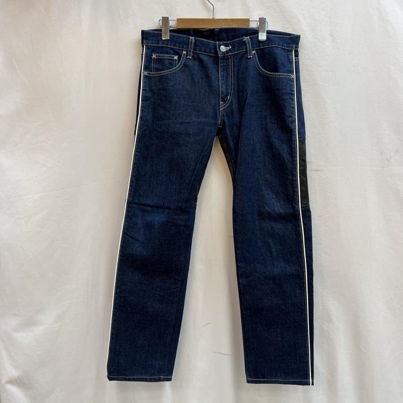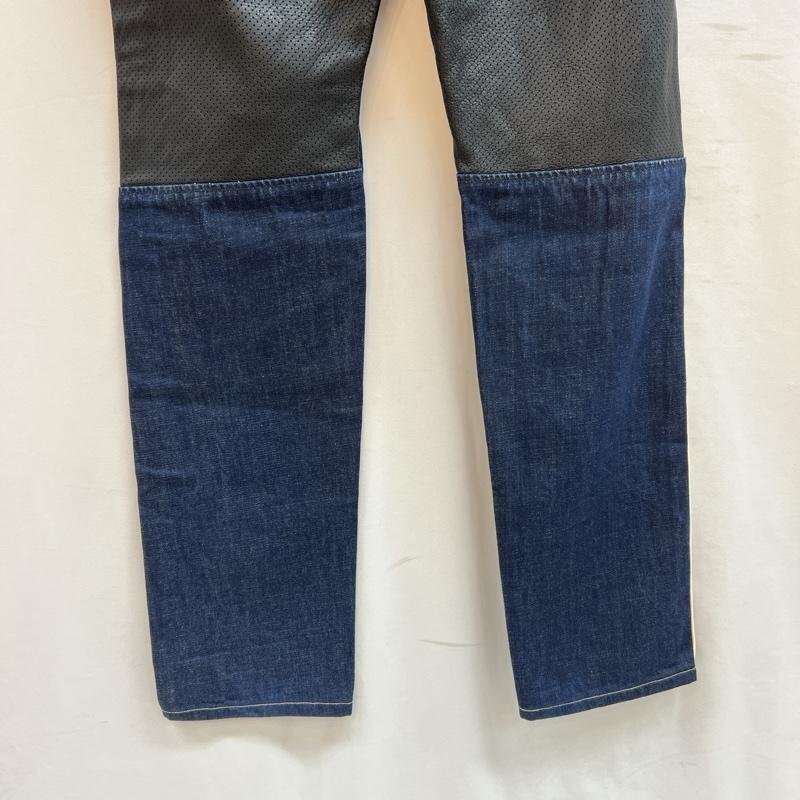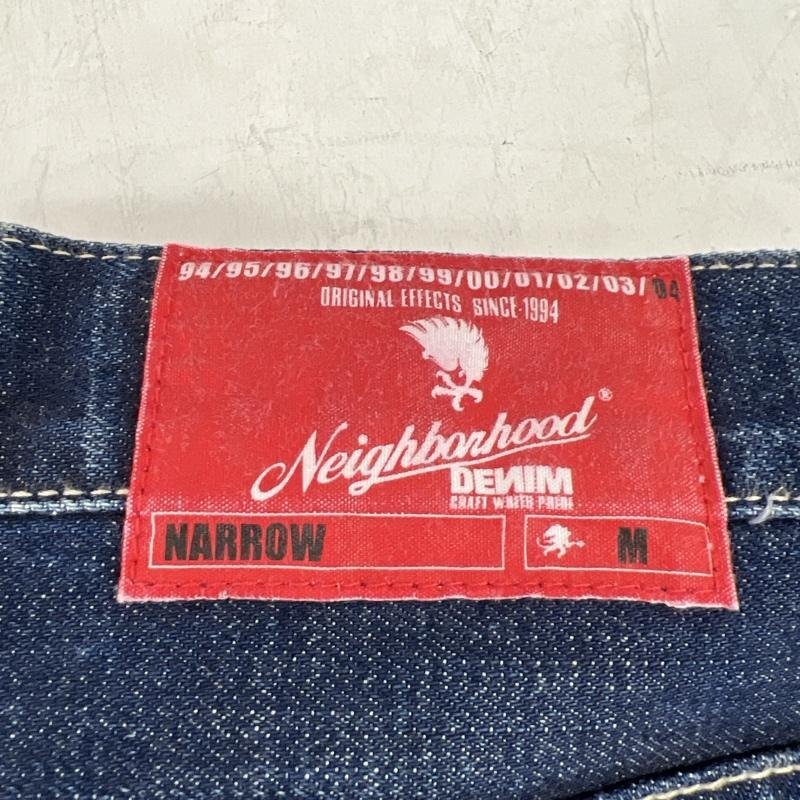 ネイバーフッド 2004年 SAVAGE NARROW 牛革 パンチングレザー パイピング 切替 ナロー デニム M