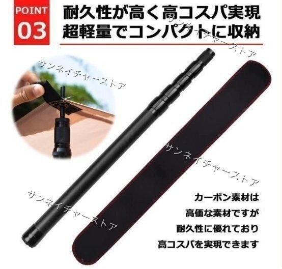 ◆【耐久性が高い】カーボンはアルミよりも強度が高く、曲がりにくいため、風に強いです。また腐食しにくく、耐久性抜群です