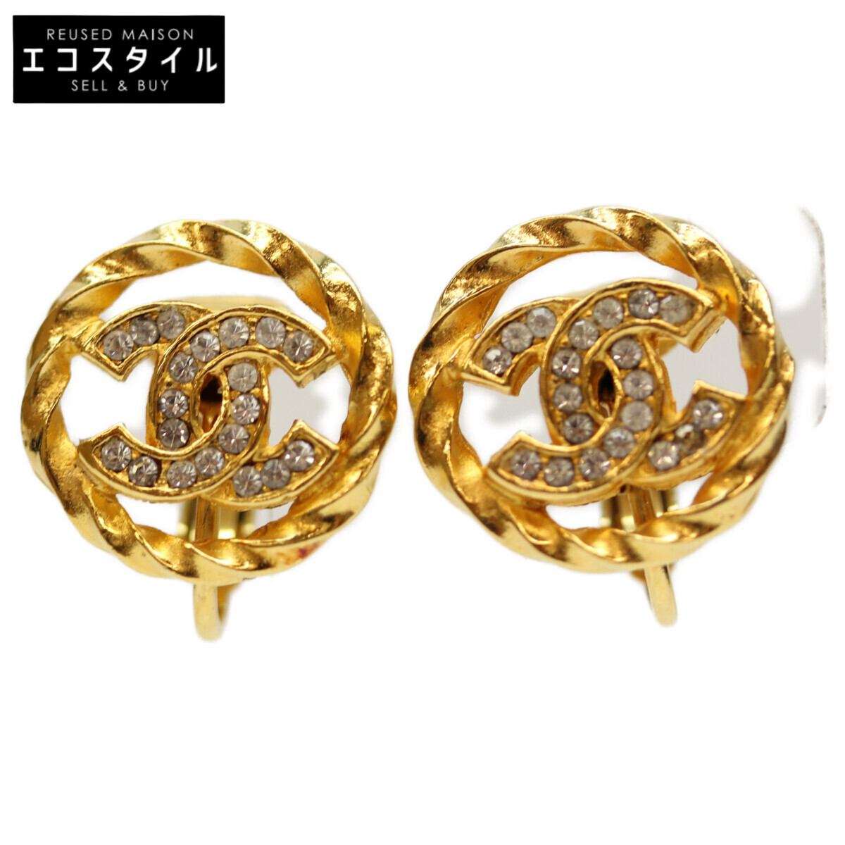 CHANEL シャネル 2137 GP ラインストーン サークルココマーク イヤリング イヤリング ゴールド レディース