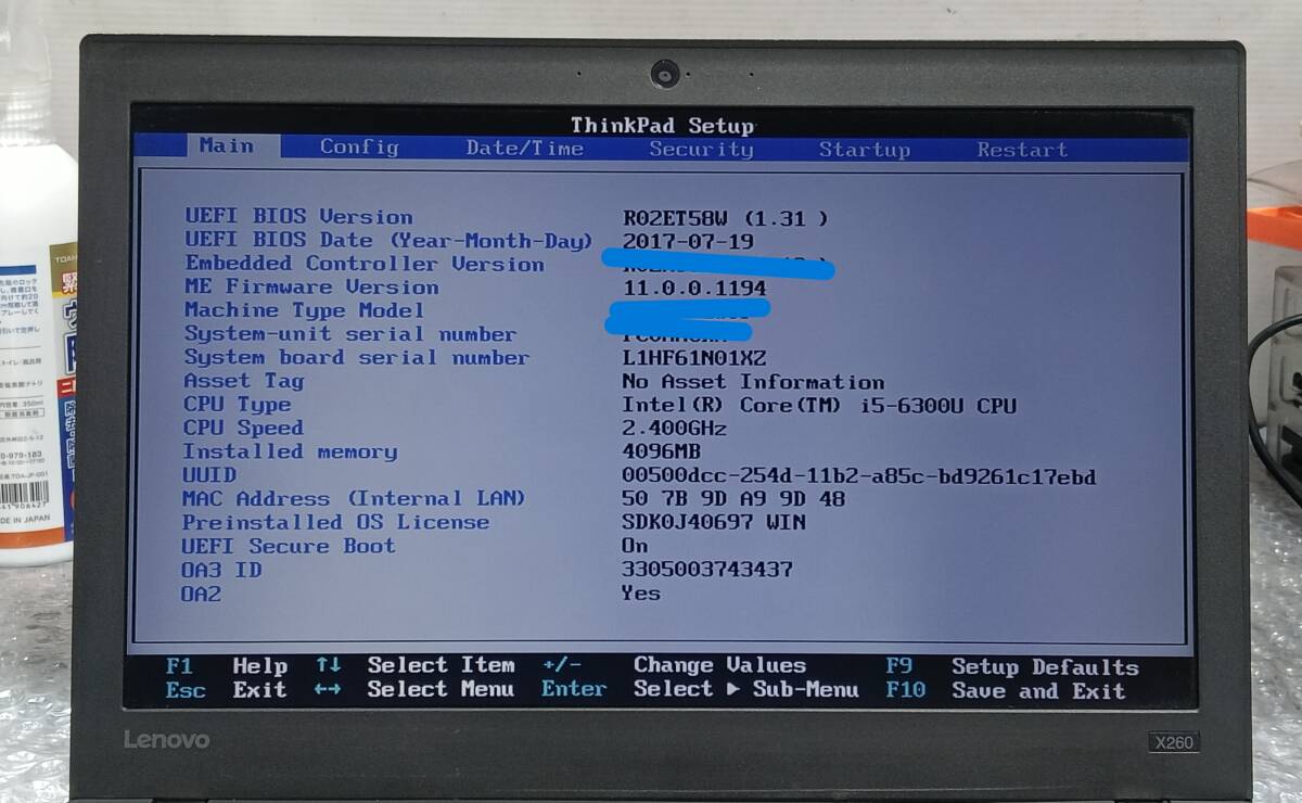 液晶パネル欠品 外観不良、LENOVO X260 Core i5-6世代 4GB ジャンク4830