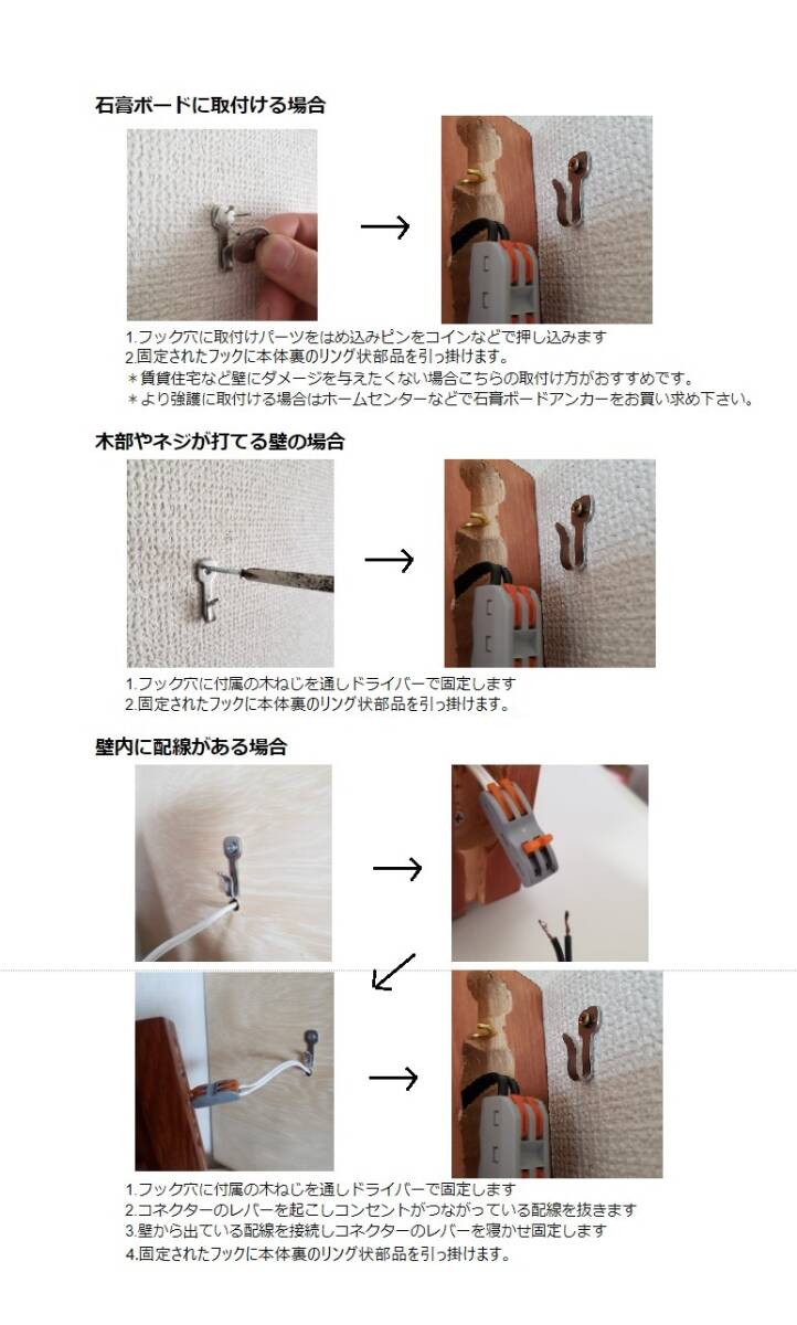 本品は付属の取り付けキットを使用することにより、賃貸住宅の石膏ボードや木質の壁などにも最小の穴で取り付け可能です。