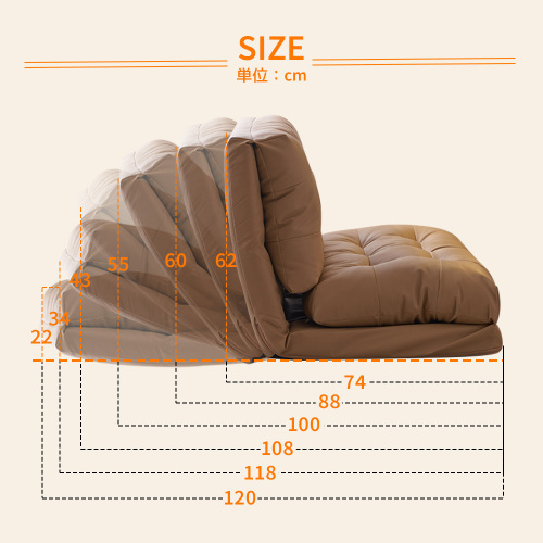 • ★【変幻自在に 自分好みの角度に】背面には6段階のリクライニング調節機能付き。細かな調節が可能なので、体勢に合わせてベストな角度で、ゆっくりと寛げます。さらにソファ時は座面を重ねてボリュームUP。上部のクッションは座った時のふかふか感や気持ちよさを追求。下部のクッションは少し硬めでより長く使用していただく為の 土台の役目を果たします。異なる硬さに設定したことで絶妙な座り心地、寝心地を実現しました。映画鑑賞などのゆったりしたい時はカウチスタイル、急な来客時などは簡易ベッドとして、様々なシーンに活躍します。ソファスタイルでもダブルクッションでゆったりと寛げいただけます。