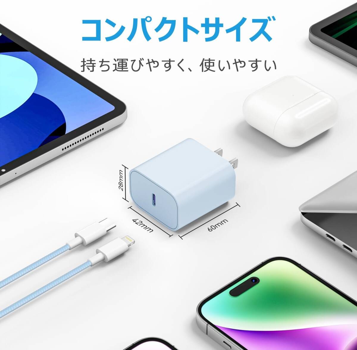 • 【軽量化設計幅広い互換性】充電器本体が60*41*28mmでコンパクト、日常用お仕事用はもちろん、旅や出張もすごく役立ちます。この上iPhone/ipad各モデル、この充電器一つでライトニング充電全て対応できます。充電器本体はType-C充電端子対応、市販のスマホ、タブレットはほぼ全て接続・充電可能。高頻度で何度もプラグを抜き差ししない限り、本体の耐久も保証されます。プラス100V-220V対応、海外使用も問題なし