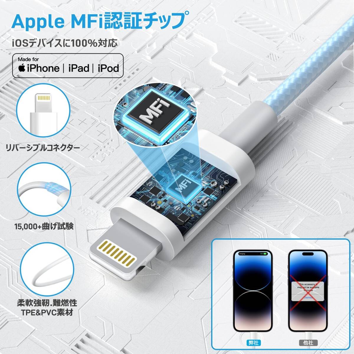 iPhone 充電器 20W PD 急速 [2個セット/Apple MFi・PSE認定] USB C - Lightning ケーブル 2m付き