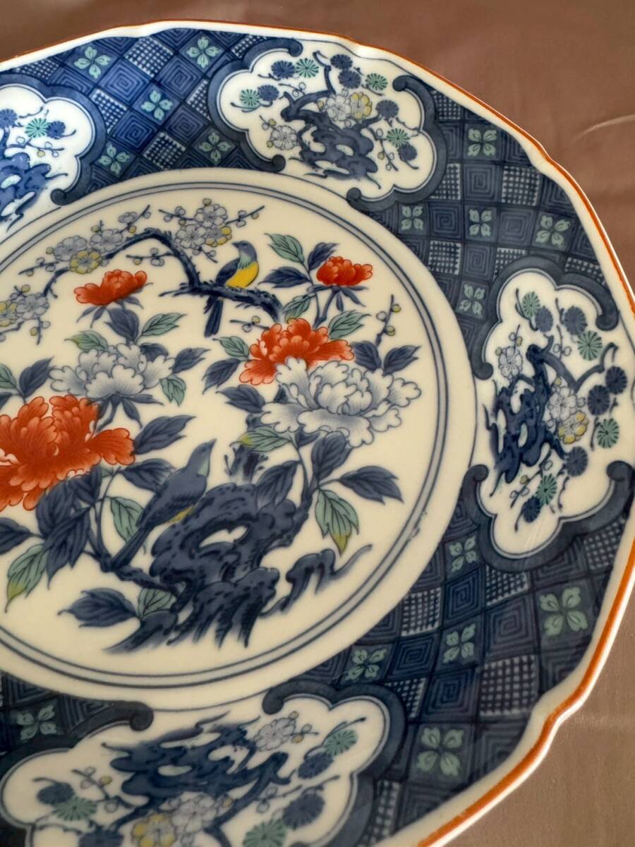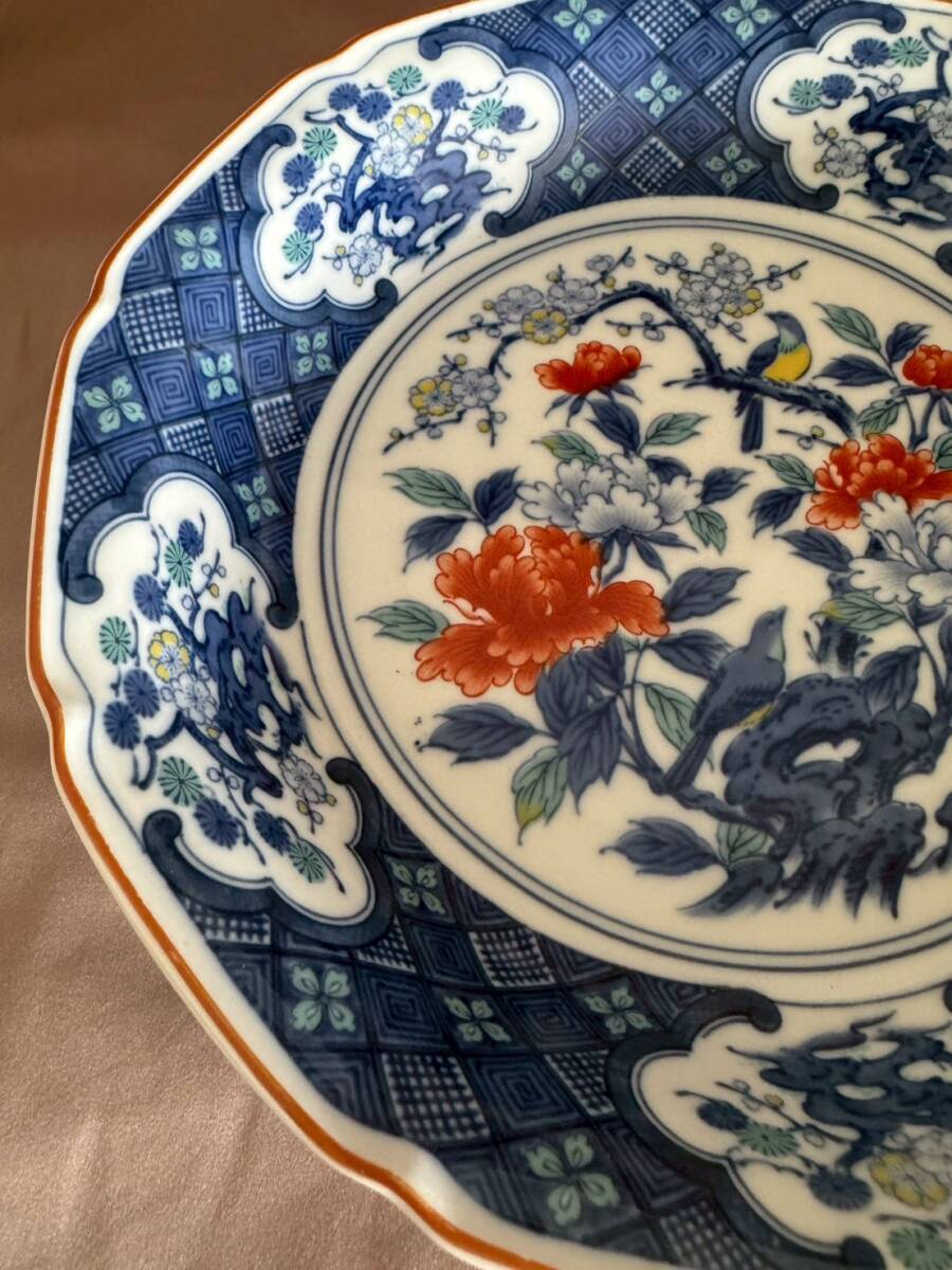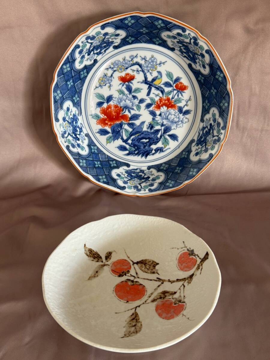 たち吉 陶器 柿柄 皿・有田焼 若山窯 梅にうぐいす 紅白の牡丹 大皿 深皿 染付
