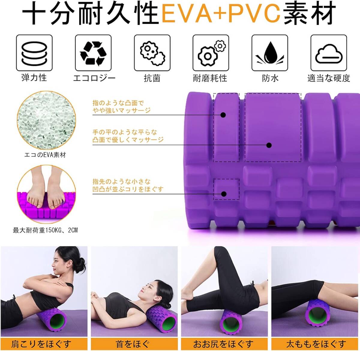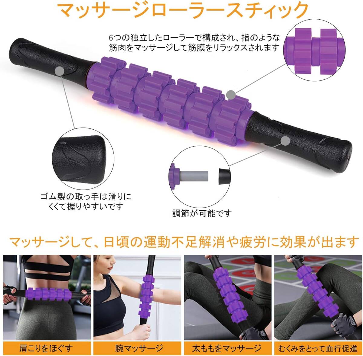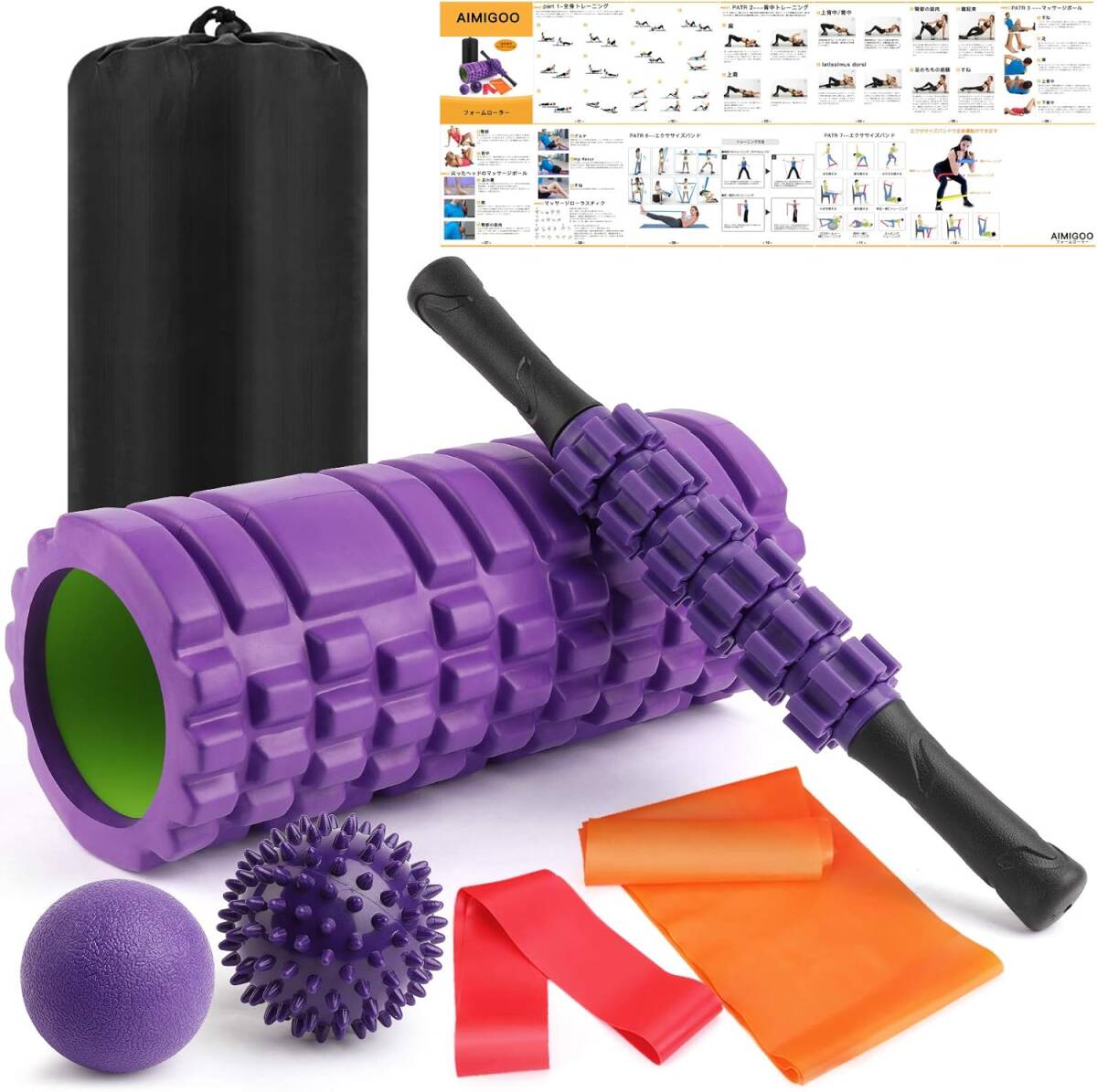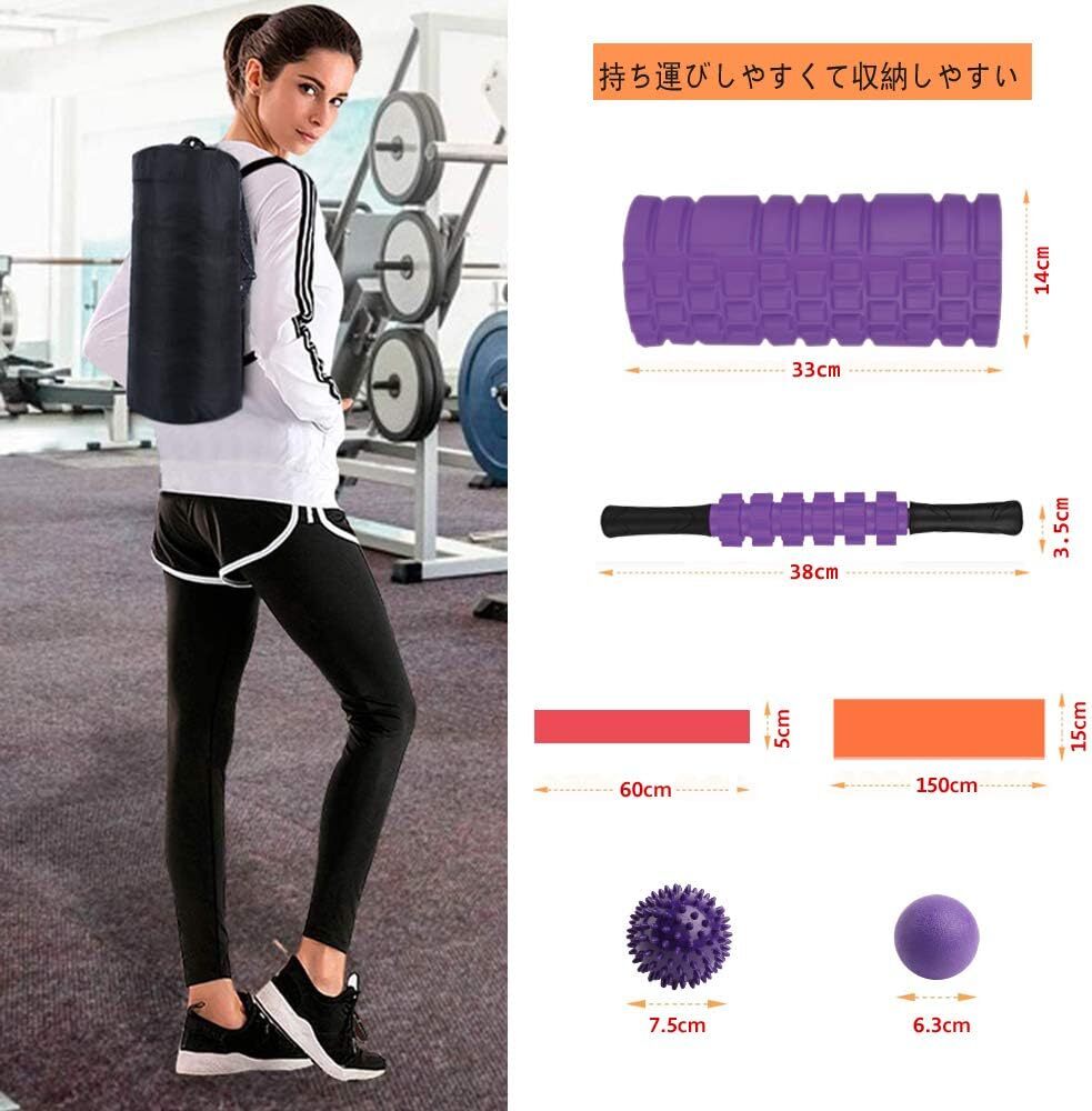 パープル色 Rondofy フォームローラー 筋膜リリース ストレッチ スティック ヨガポール トリガーポイント マッサージボール 7点