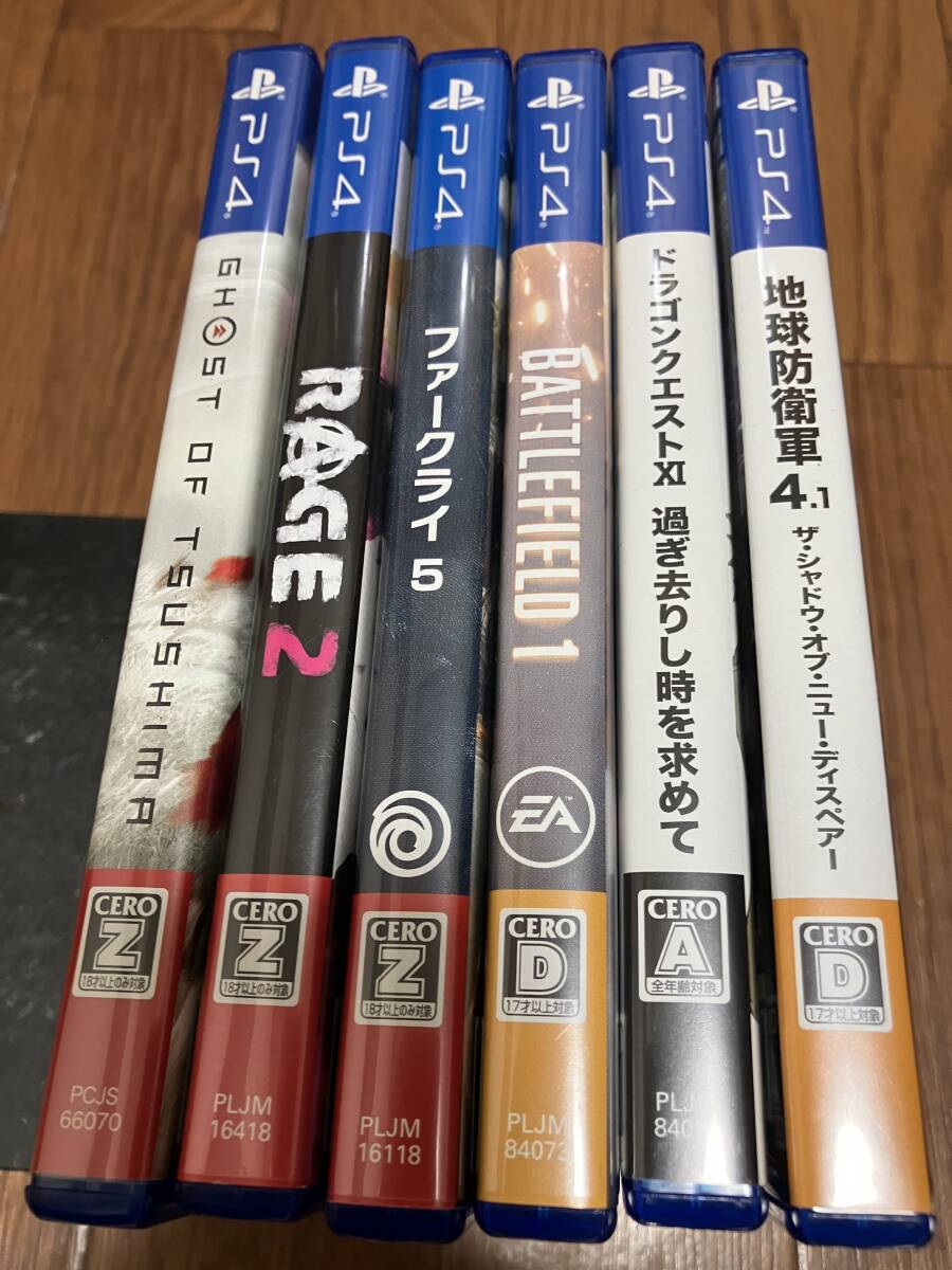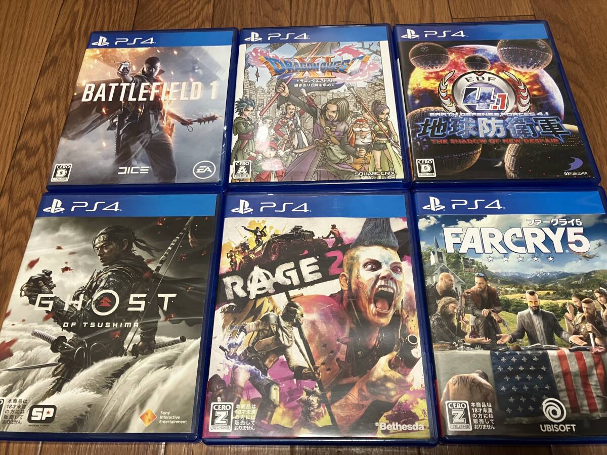 ps4プレステ4PlayStation4 ソフト 6本まとめて地球防衛軍4.1/ドラゴンクエスト過ぎ去りし時を求めて/BATTLEFIELD1/ファークライ5/RAGE2/GHOSTOF TSUSHIMA全て完動品です。まとめ売りです!