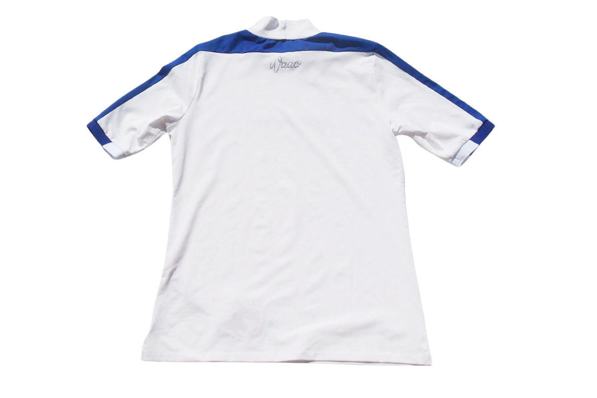 肩から袖にかけてのブルーラインが、爽やかさとシャープさを両立。