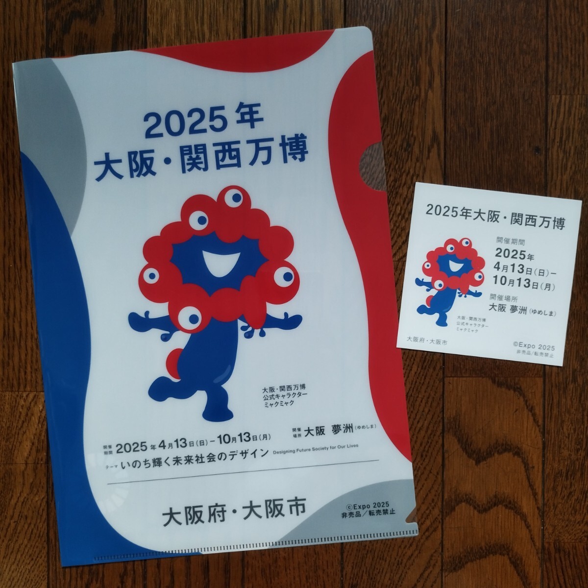 2025年大阪・関西万博を記念し作成された、公式キャラクター ミャクミャクの大阪府・大阪市のファイルとシールのセット。対になっています。非売品、新品未使用のノベルティ。