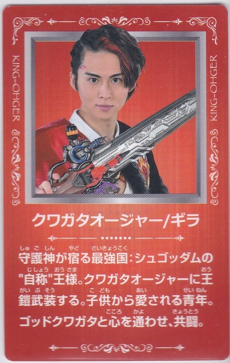 プリマハム『王様戦隊キングオージャー』ソーセージのおまけのメタリックカード/トレーディングカード【01】クワガタオージャーです。