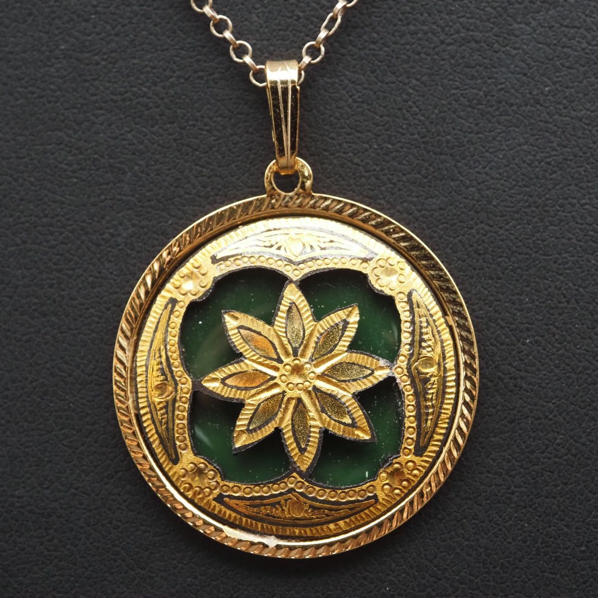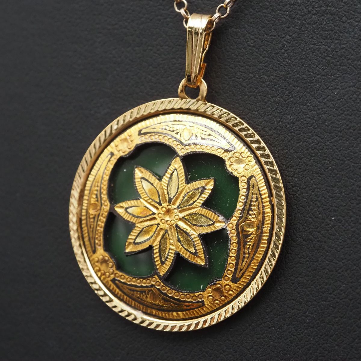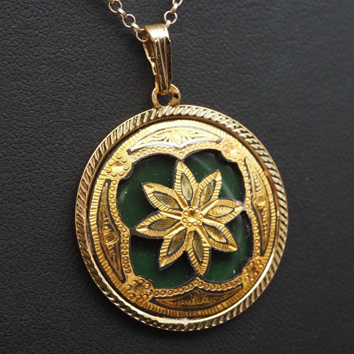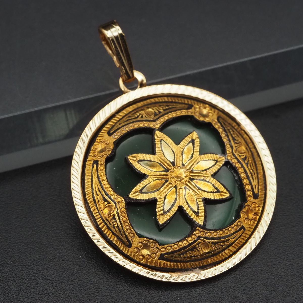 G182 金工 象嵌 ペンダント トップ 幾何学模様 ゴールド デザイン チャーム ヘッド