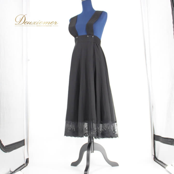 | 【商品名】社交ダンス衣装 スカート 【サイズ】 平置き実測:総丈約83cm(サスペンダー除く)、ウエスト約31.5cm~ ※実測の為、多少の誤差はご容赦願います 【仕様】 ・ファスナー仕様 ・若干の伸縮性有り 【品質表示】 ポリエステル ------------------------------------ 【ポイント】 ▽Sanline サンリーヌ 日本製 ▽隙のないモノトーンブラック ------------------------------------ 【撮影時使用トルソー】 種 類:女性用トルソー9号 (一般的に使用されるサイズです) サイズ:肩先~床約135cm(身長約160cm)、肩幅約37cm、バスト約88cm、ウエスト約66cm、ヒップ約89cm |