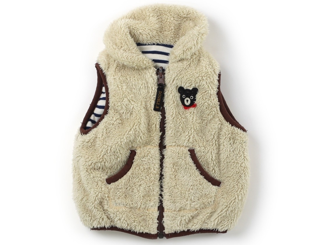 リバーシブルで着られます。無地の部分はボアで、中綿入り。ボーダー柄側は綿地です。裾に毛玉があります。
