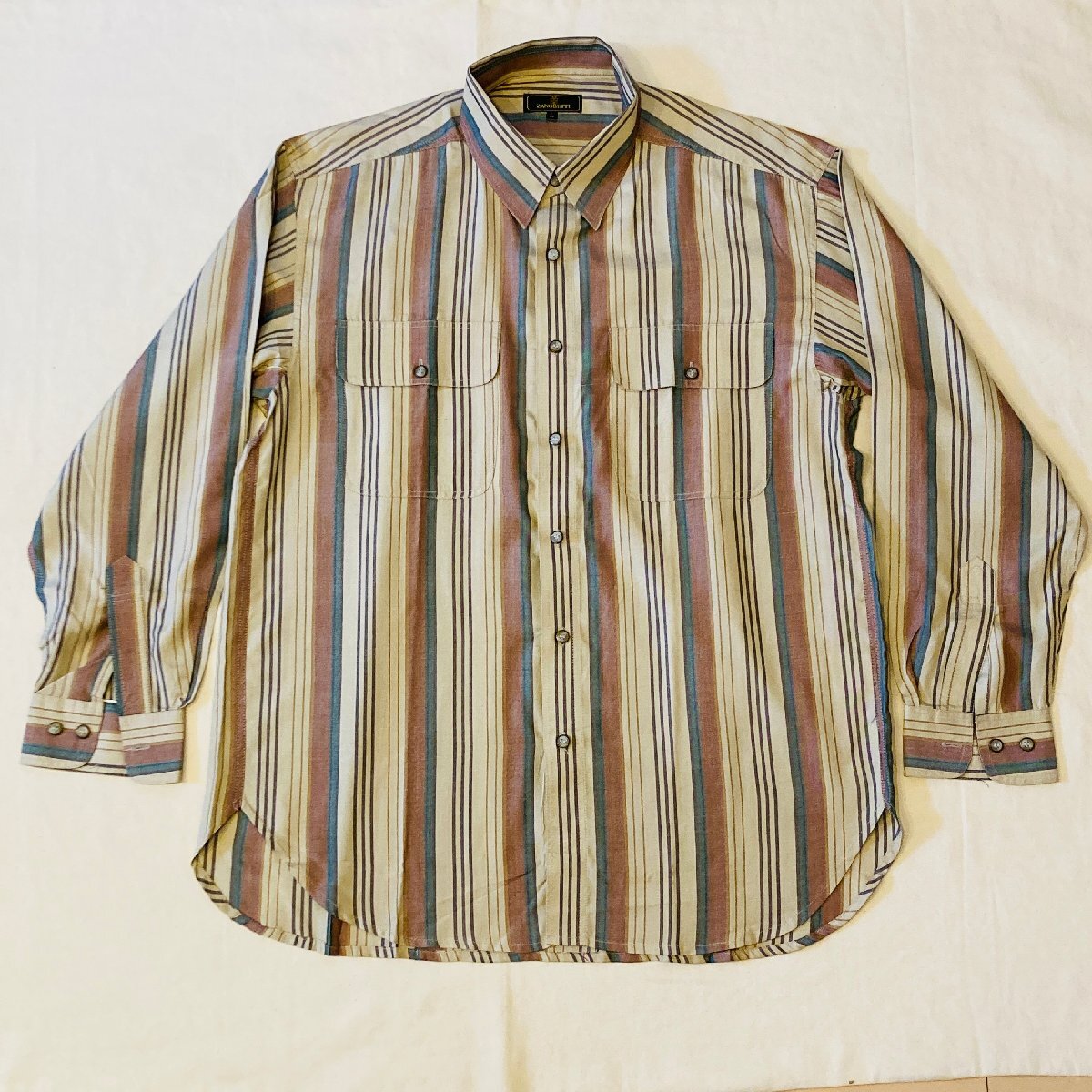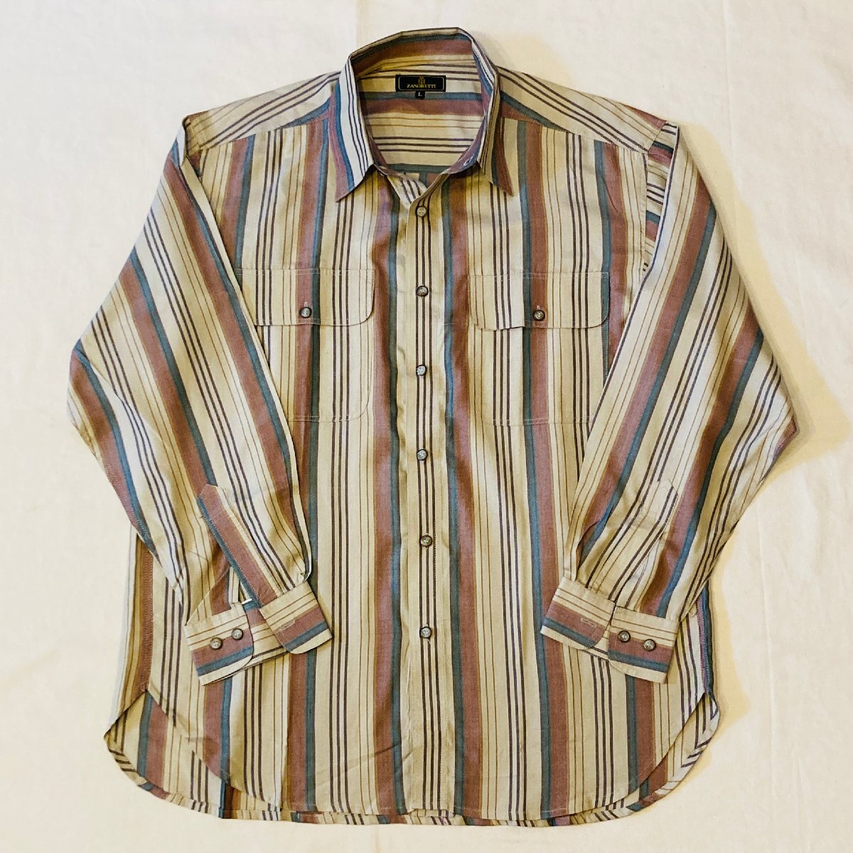 ZANOBETTI 100% 絹 シルク 柄シャツ ロングスリーブ 長袖 ストライプ柄 L