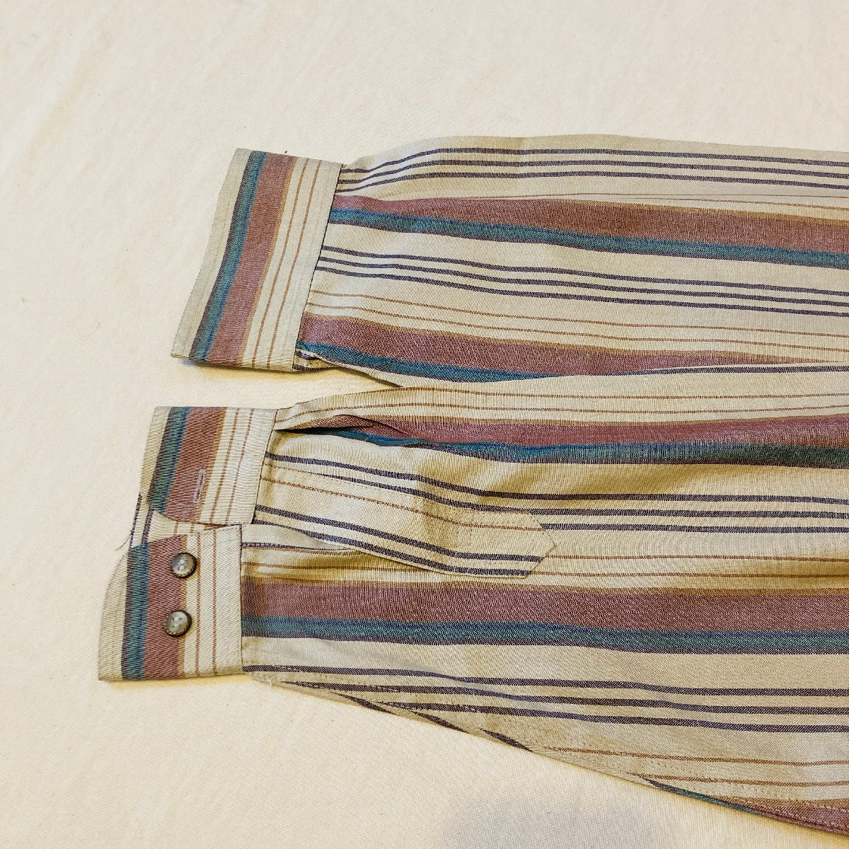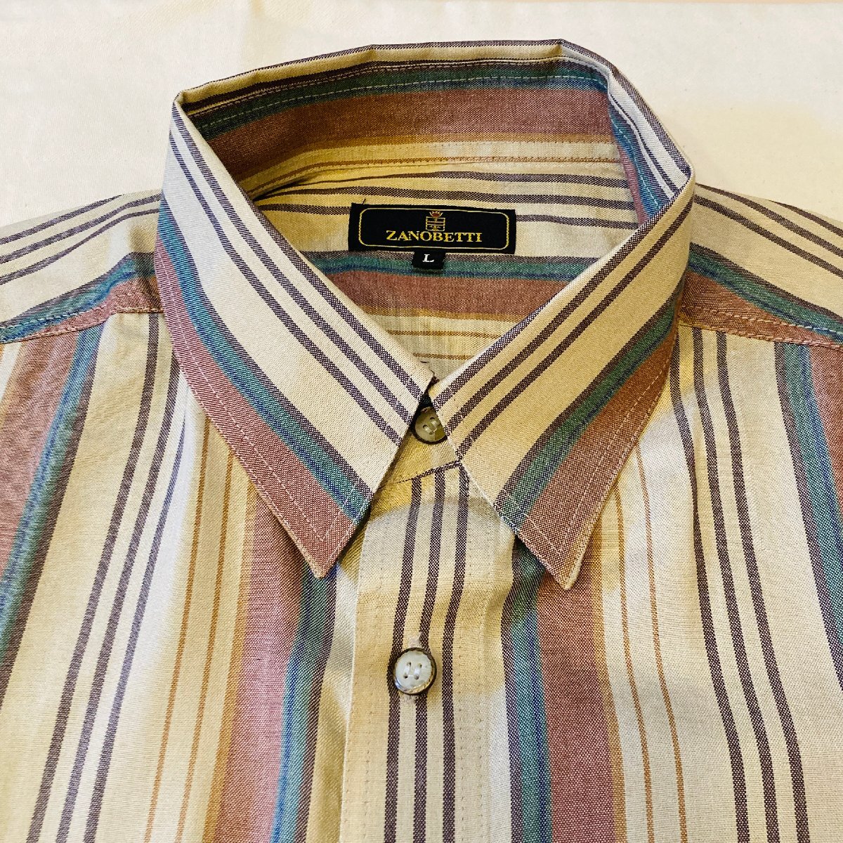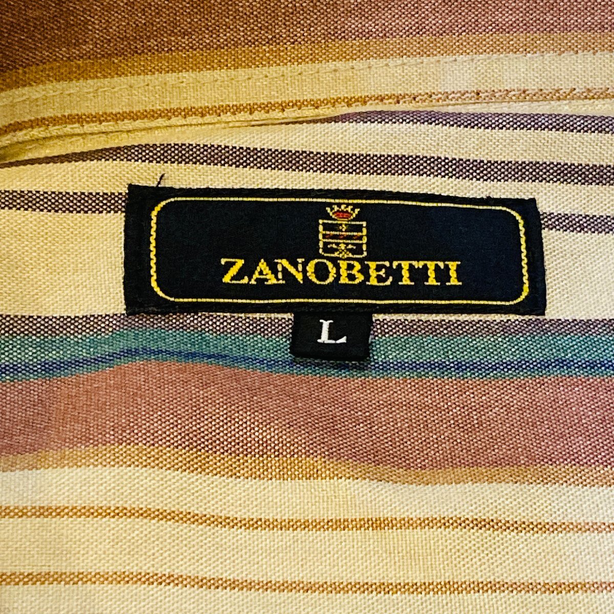 ZANOBETTI 100% 絹 シルク シャツ ロングスリーブ 長袖 ストライプ柄 L