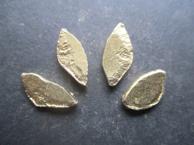介護施設入所のための身辺整理を手伝うことになりました。「甲州端金」がブームになった昭和の一時期に購入したものとのことです。購入価格は総額52000円とのことですが、未鑑定・真贋不明と聞いています。人生の最晩年で世間に迷惑をかけたくはないとのことで、「本物ではない」ことを前提に放出を希望しています。事情をご賢察の上、本物でも本物でなくてもどちらでもかまわない方のみご入札ください。従って本物であっても後で差額分を請求することはいたしませんし、本物でなくても返品・返金には応じかねます。汚れや細かい傷があります。撮影の際の光の量によって実物と違った色に写ることがあります(3枚目の画像が最も実物の色に近いように思います)。タイトルに記載した量目は委託者宅の計量器で測定した値です。0.2g以内の誤差をお許しください。高騰防止のため即決価格を設定いたしました。自己紹介欄にオークション休業日を記載させていただいております。お手数とは存じますが、ご入札前にお読みいただければ幸いです。よろしくお願い申し上げます。