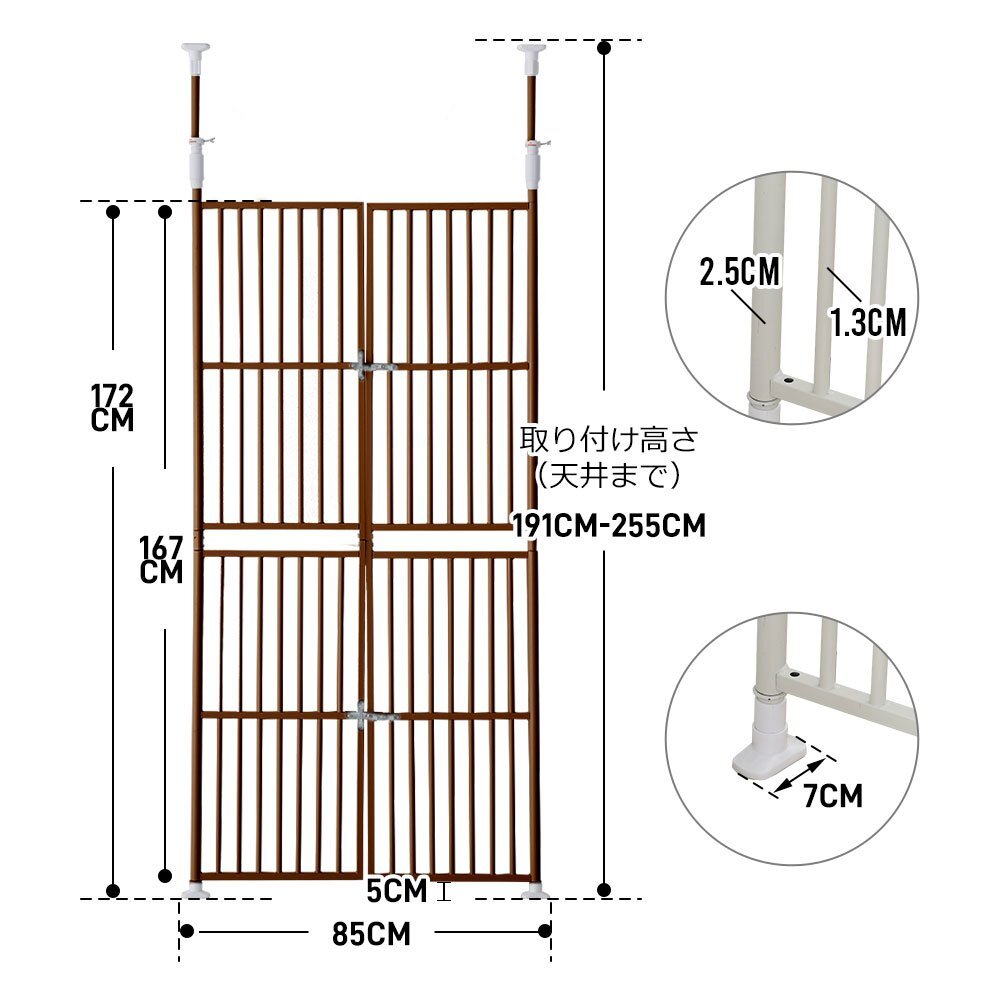 【国内発送】ペット高さ調節対応 191~255cm ドア ケージ 取付幅85~91cm 留守番 保護 ネコ 脱走防止 柵 フェンス 脱走防止 猫用 多頭飼い