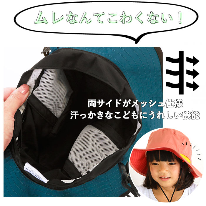 | 商品説明 | ・強い日差しの下でも元気に遊び回るお子さまにぴったり、キッズサイズのアドベンチャーハット。 ・表面にはっ水加工を施したポリエステル素材を採用。突然の雨に降られた時やアウトドアでアクティブに活動したい時も安心。 ・紫外線を99.9%カットする、UV対策帽子。つばが360度あるアドベンチャーハットなので、お肌がデリケートなお子さまにも。 ・左右にメッシュ素材の通気窓付きで、熱中症が気になる季節でも着用しやすいよう通気性を確保。運動量が多く、汗っかきのお子さまでも快適。(メッシュ素材の色はカラーにより異なります) ・首元のゴムは、サイズ調整が可能。風が強い日のアウトドアアクティビティーでも帽子をなくす心配なし!使用しない時には取りはずしもできる♪ ・背面に頭囲サイズを調整できるドローコード付き。お子さまの成長に応じて、お好みのサイズでかぶれる。 |